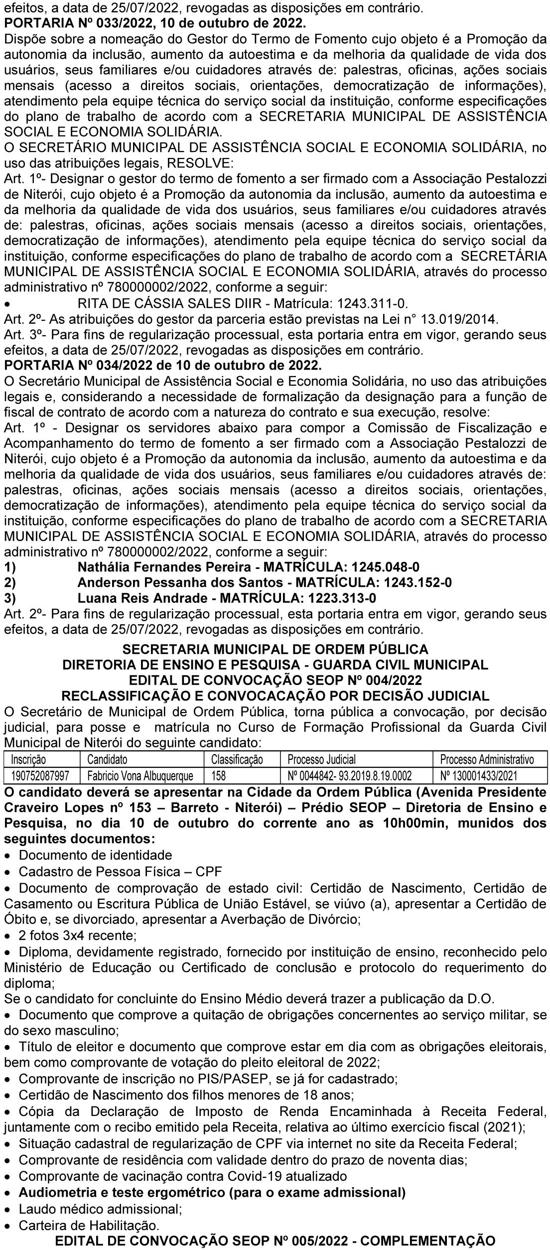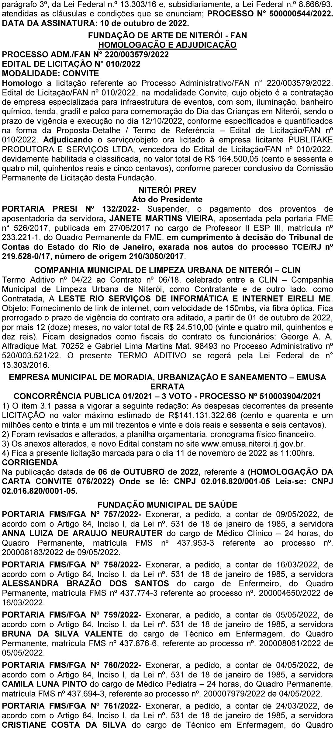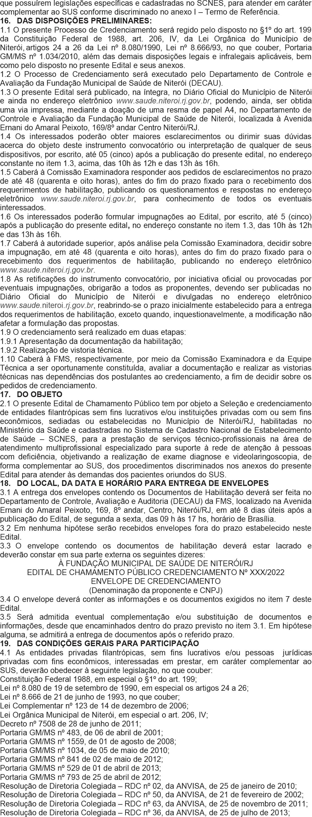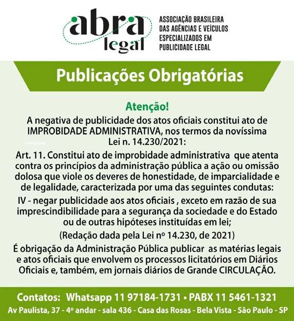 32 TERÇA-FEIRA, 11 DE OUTUBRO DE 2022 PUBLICIDADE LEGAL É AQUI.LEGALPUBLICIDADE LEGAL É AQUI.LEGAL 2719-1886 A SELLING CORRETAGEM IMOBILIÁRIA LTDA torna público que recebeu da Secretaria de Meio Ambiente, Recursos Hídricos e Sustentabilidade - SMARHS da Prefeitura Municipal de Niterói através do Processo nº 250/001179/2022 a LICENÇA AMBIENTAL MUNICIPAL DE INSTALAÇÃO - LAM-I nº 63/2022 com validade de 3 anos (até 02/10/ 2025) para realizar construção de edificação residencial multifamiliar e movimentação de terra com bota fora na Rua São Sebastião, nº 46, Ingá, Niterói/RJ. SELLING CORRETAGEM IMOBILIÁRIA LTDA CNPJ 72.200.728/0001-78 CONCESSÃO DE LICENÇA