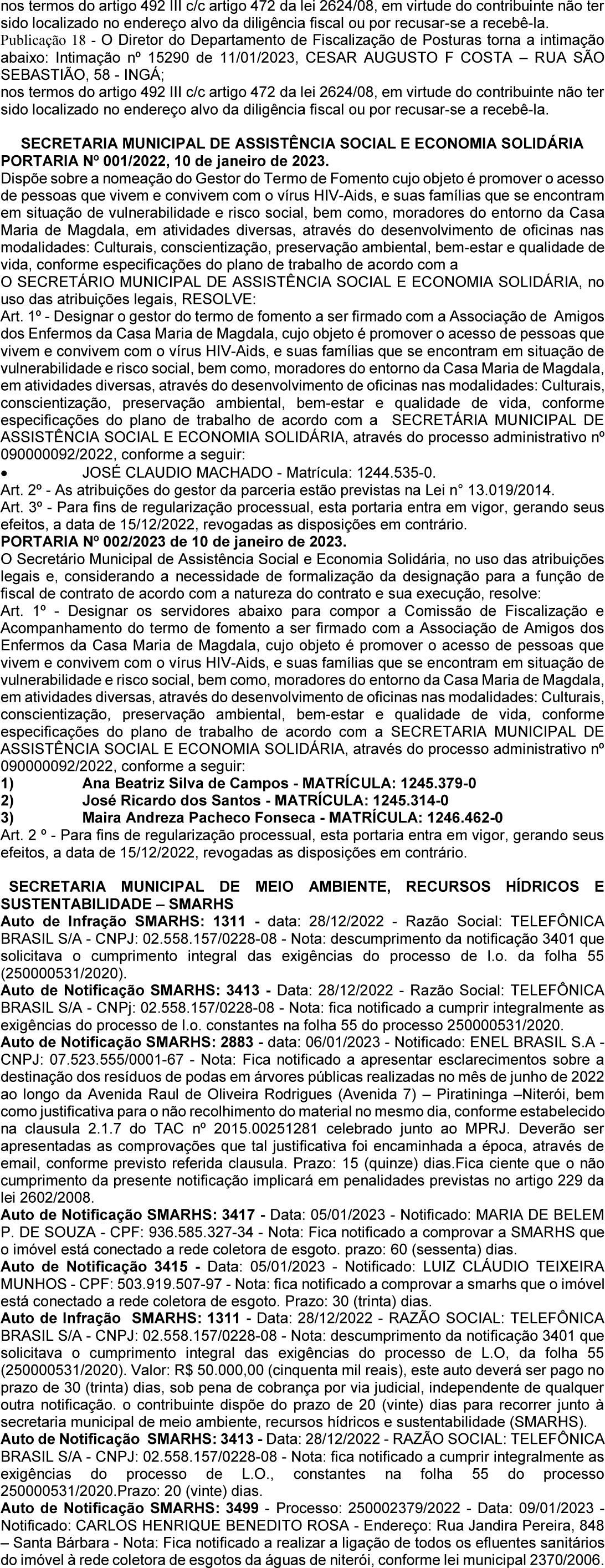 RATIFICO de acordo com a justificativa apresentada, Processo nº 7223/ 2022, objeto em favor da ENEL – COMPANHIA DE ELETRICIDADE DO RIO DE JANEIRO, para fazer face com despesas do fornecimento de energia elétrica para as praças públicas, referente ao exercício de 2023 conforme informações constantes as folhas de nº 02, 03 e 04 do presente processo.