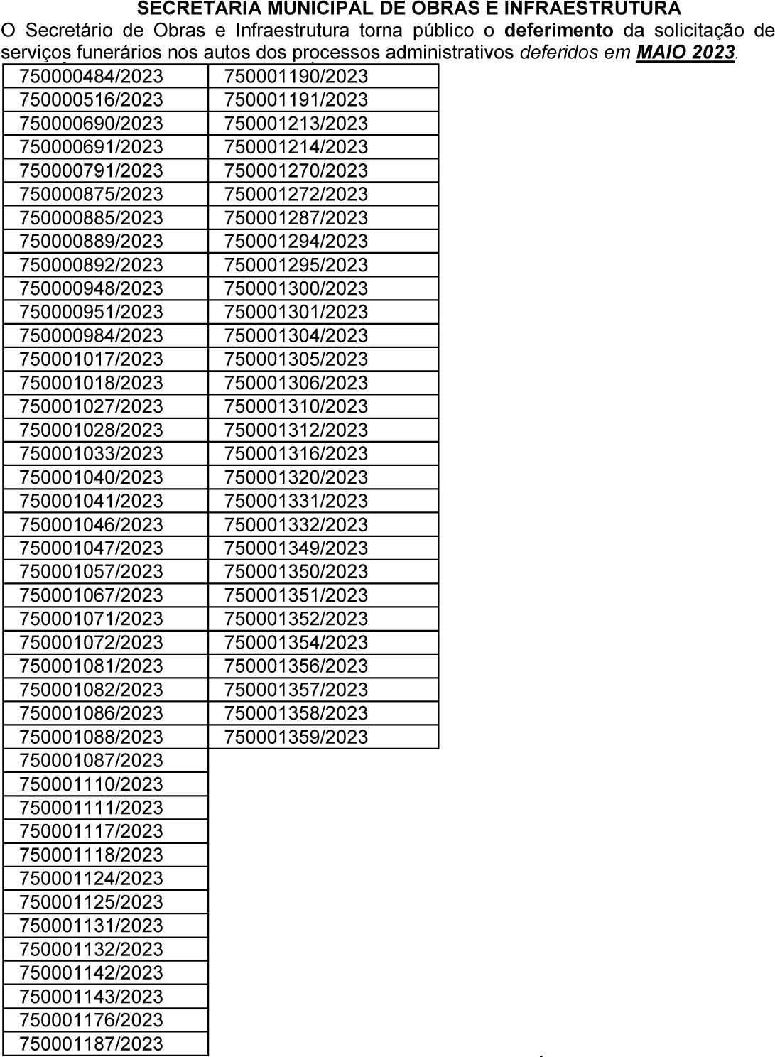 29/05/23 a 30/06/23 - 0001 a 0650 03/07/23 a 28/07/23 - 0651 a 1300 31/07/23 a 31/08/23 - 1301 a 1909