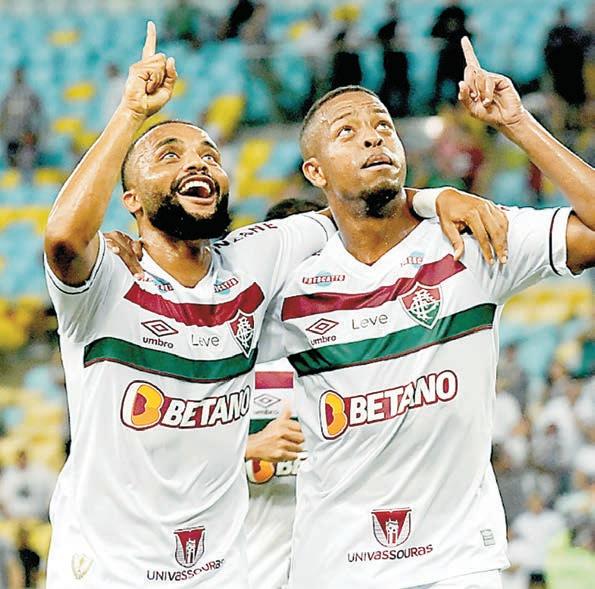Apesar da pressão e dos pedidos de "mais um" na arquibancada do Maracanã, o Fluminense não conseguiu ampliar ainda mais a vantagem. No fim, 3 a 0 e um pé nas oitavas de final da Copa do Brasil. KENO comemorando gol com Samuel Xavier