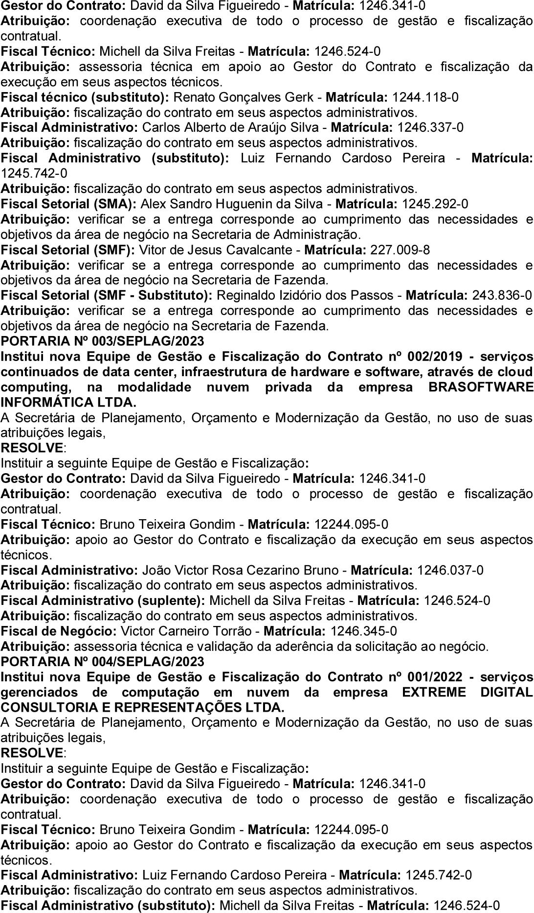 O Prefeito Municipal de Rio Bonito, Estado do Rio de Janeiro, no uso de suas atribuições legais, RESOLVE: NOMEAR os abaixo relacionados, para o cargo em Comissão de CHEFE DE FISCALIZAÇÃO, Símbolo CF, a contar de 01 de janeiro de 2023: