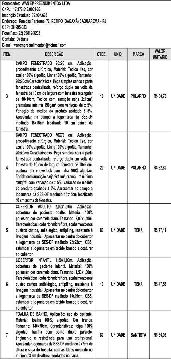Objeto: Registro de Preços para futura aquisição do enxoval hospitalar, por um período de 12 (doze) meses.