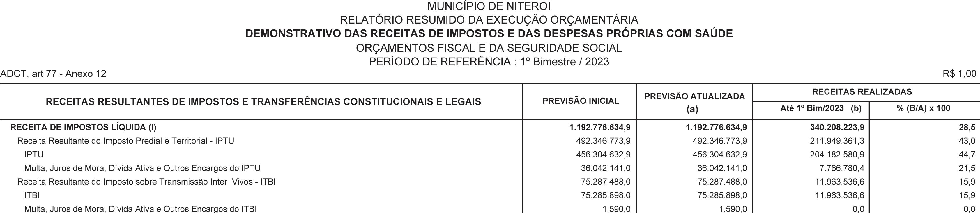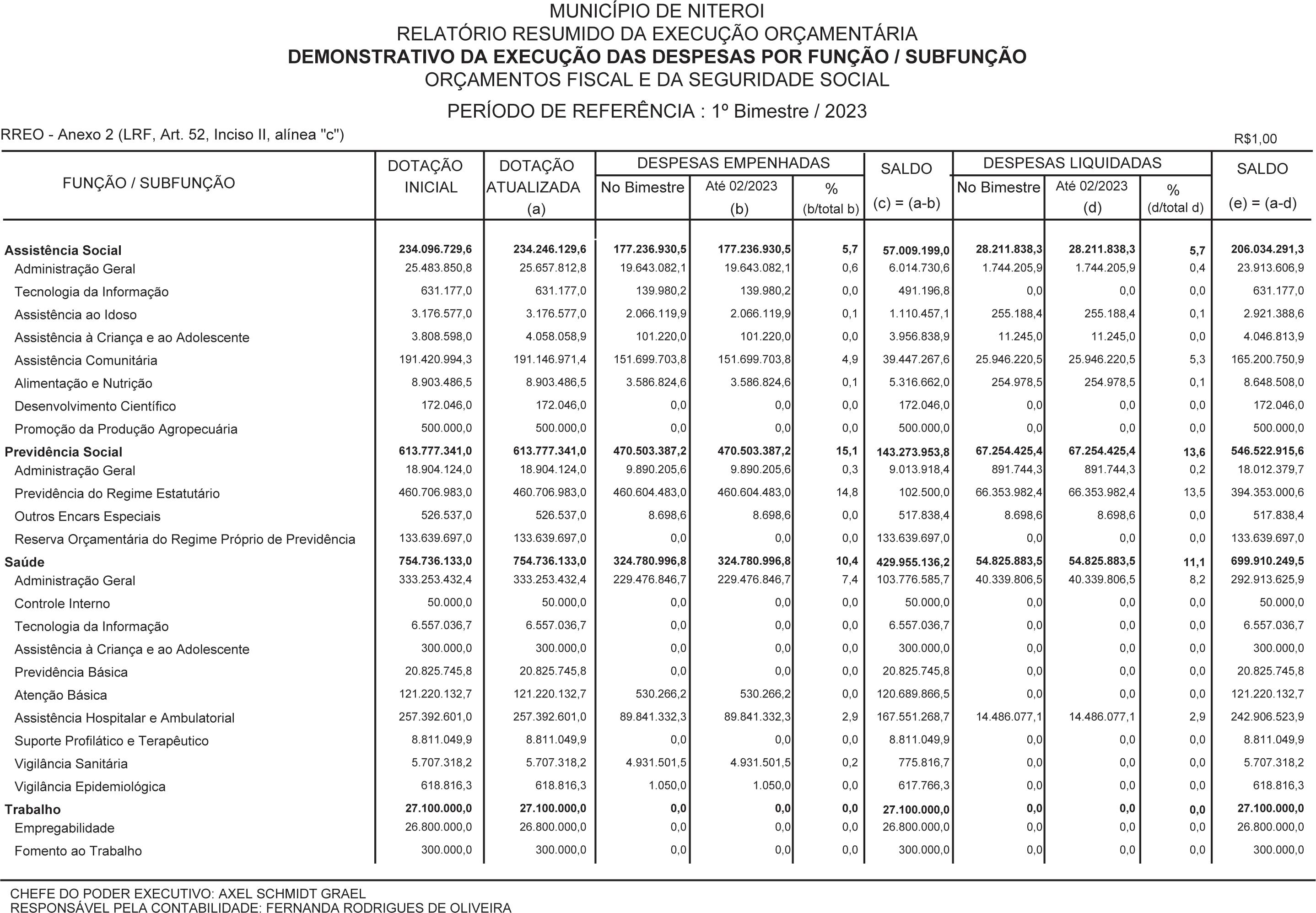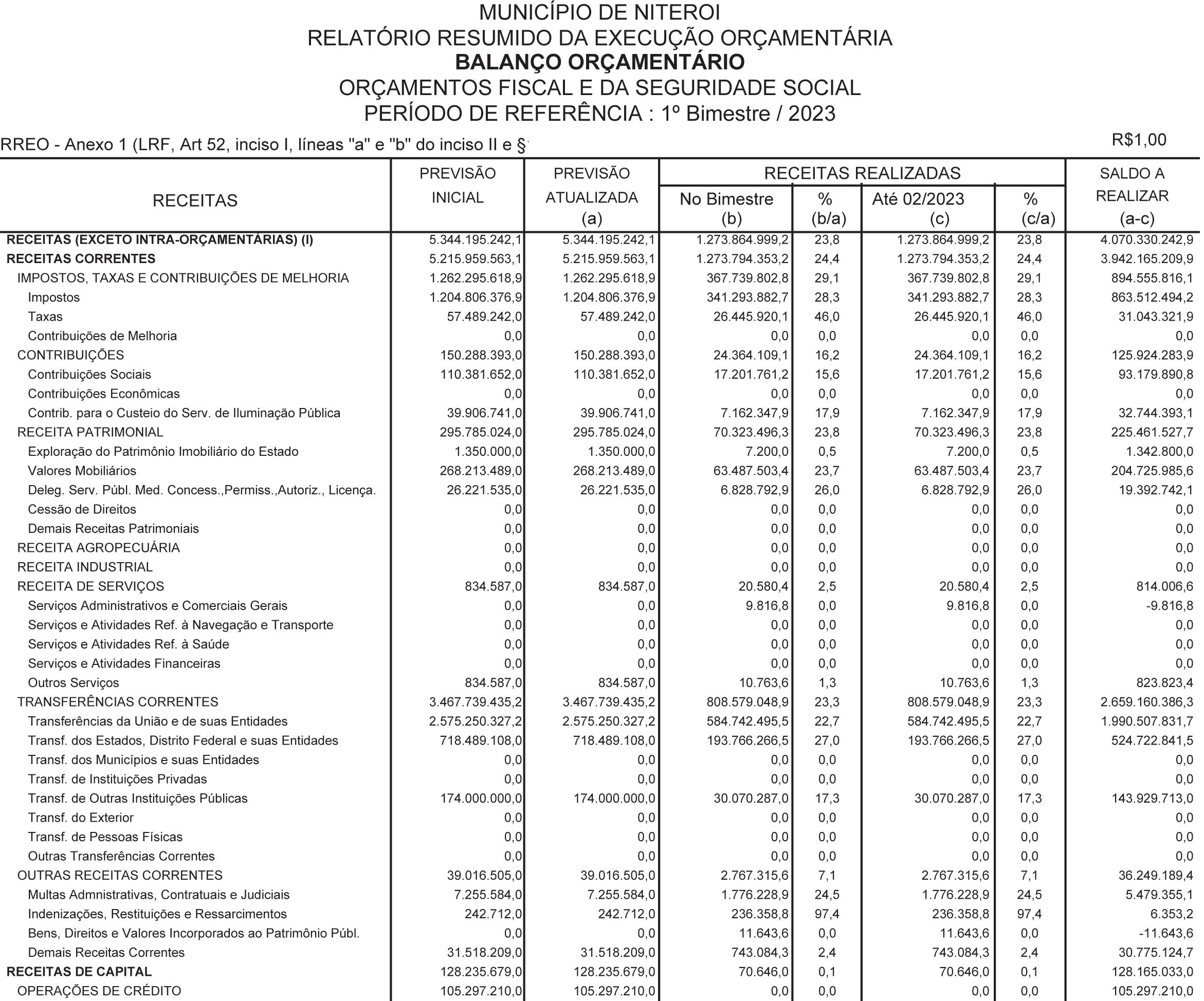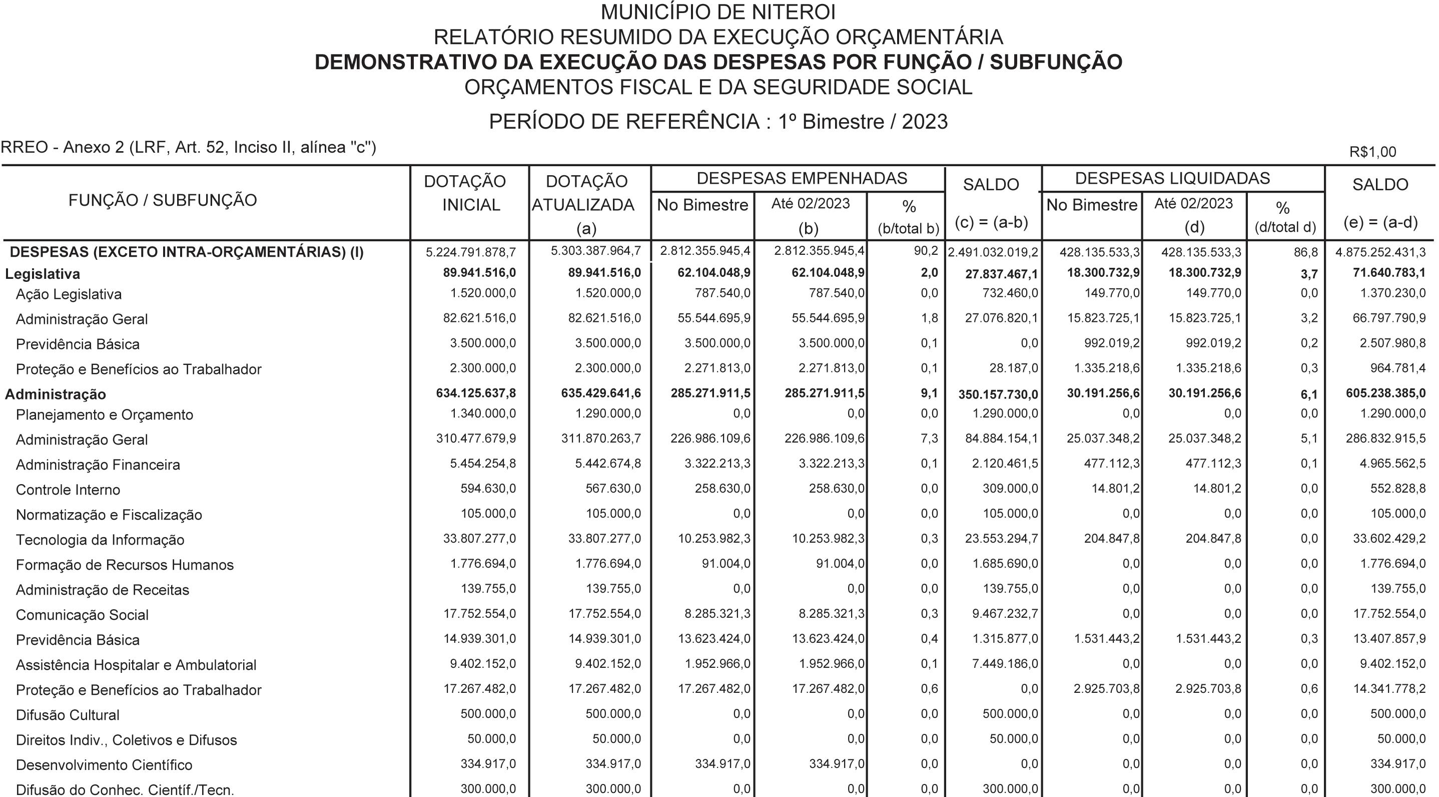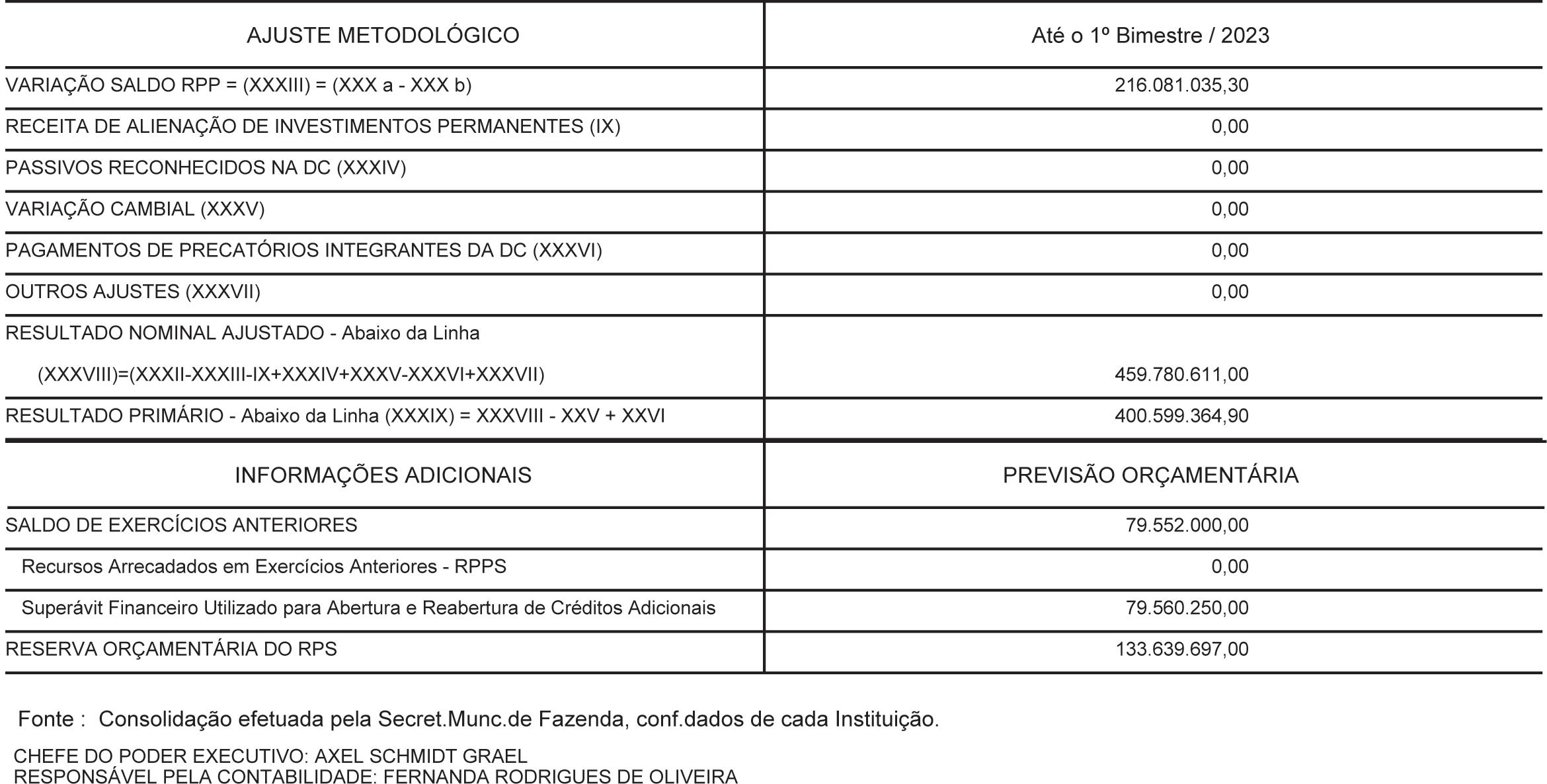 A SECRETARIA MUNICIPAL DE FAZENDA, no uso de suas atribuições legais, tendo em vista o disposto no Artigo 52 e 54 da Lei Complementar nº 101 de 04 de maio de 2000, manda republicar o Relatório Resumido de Execução Orçamentária do1º Bimestre de 2023.