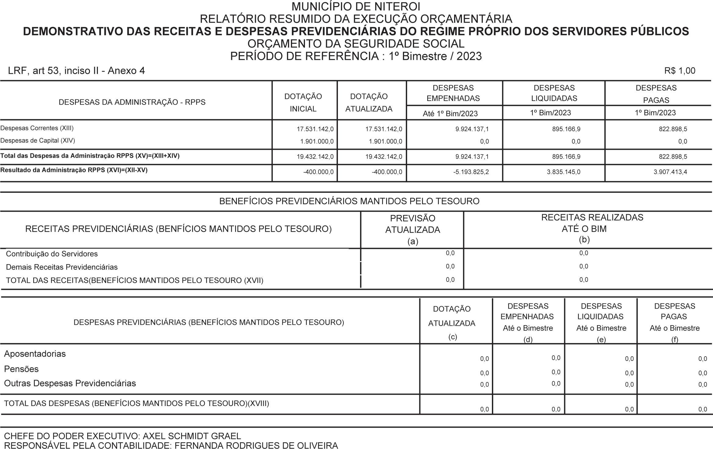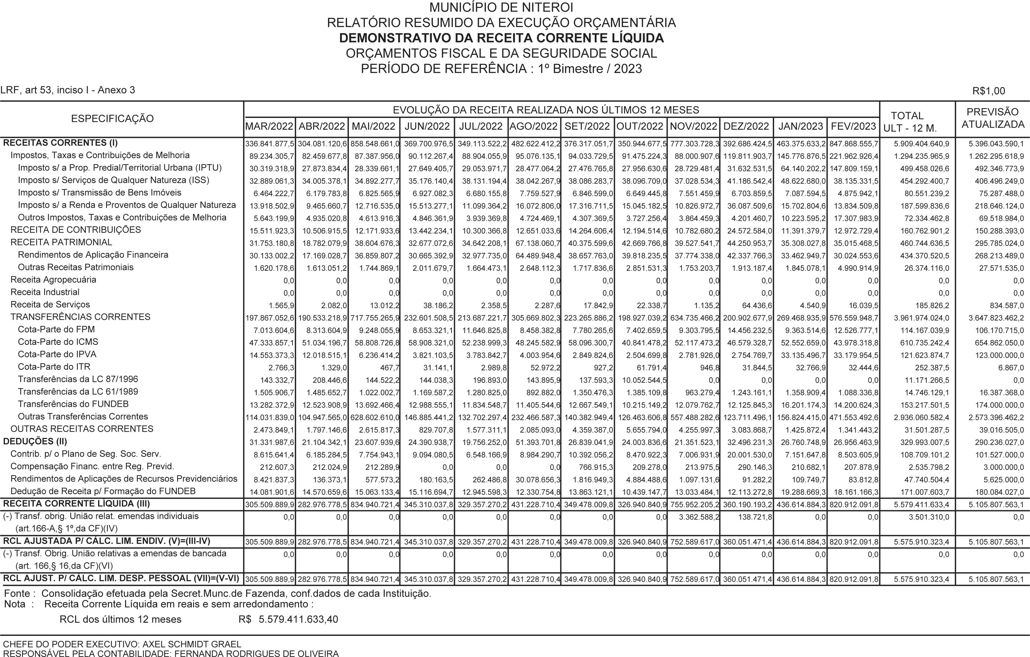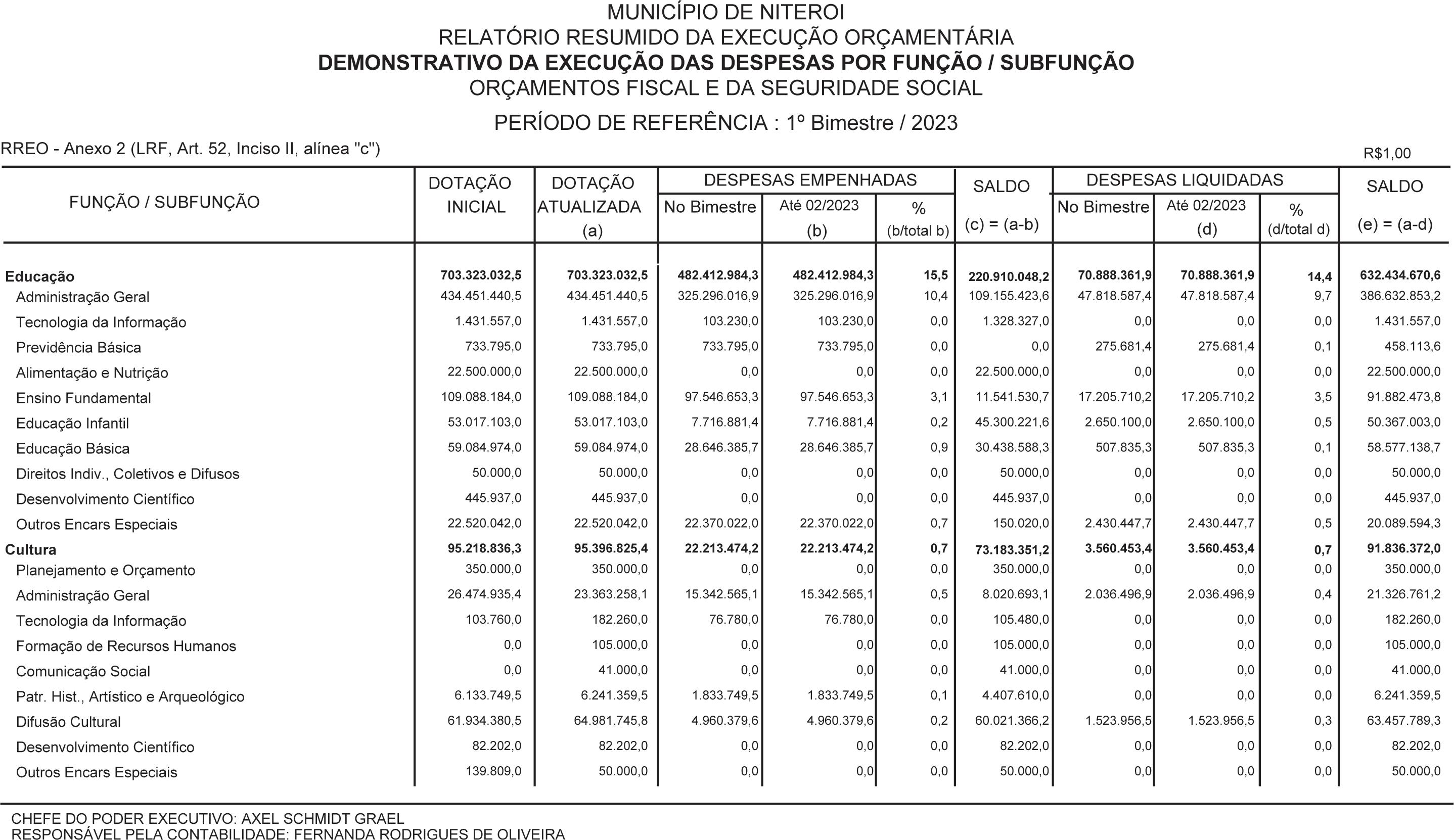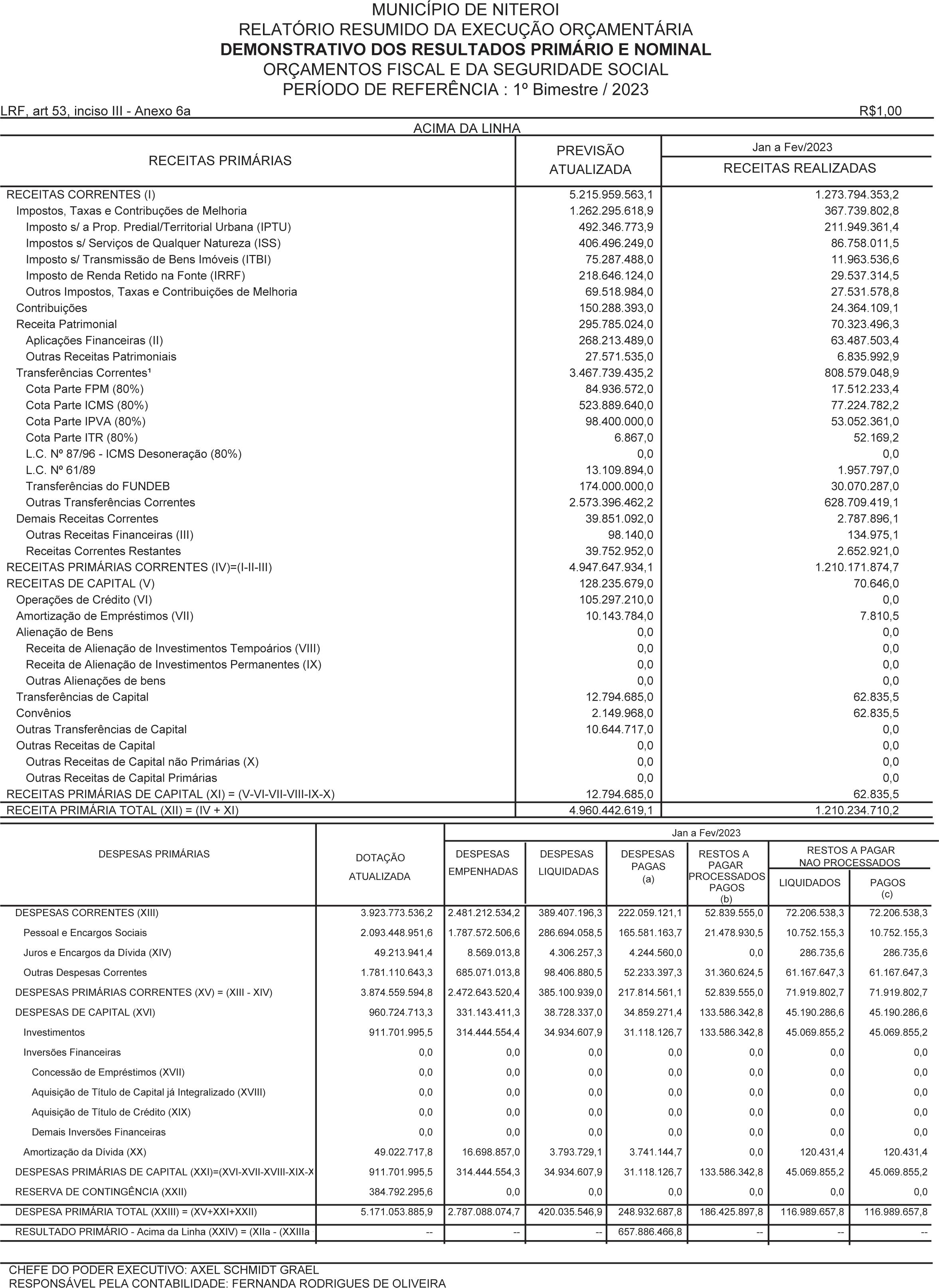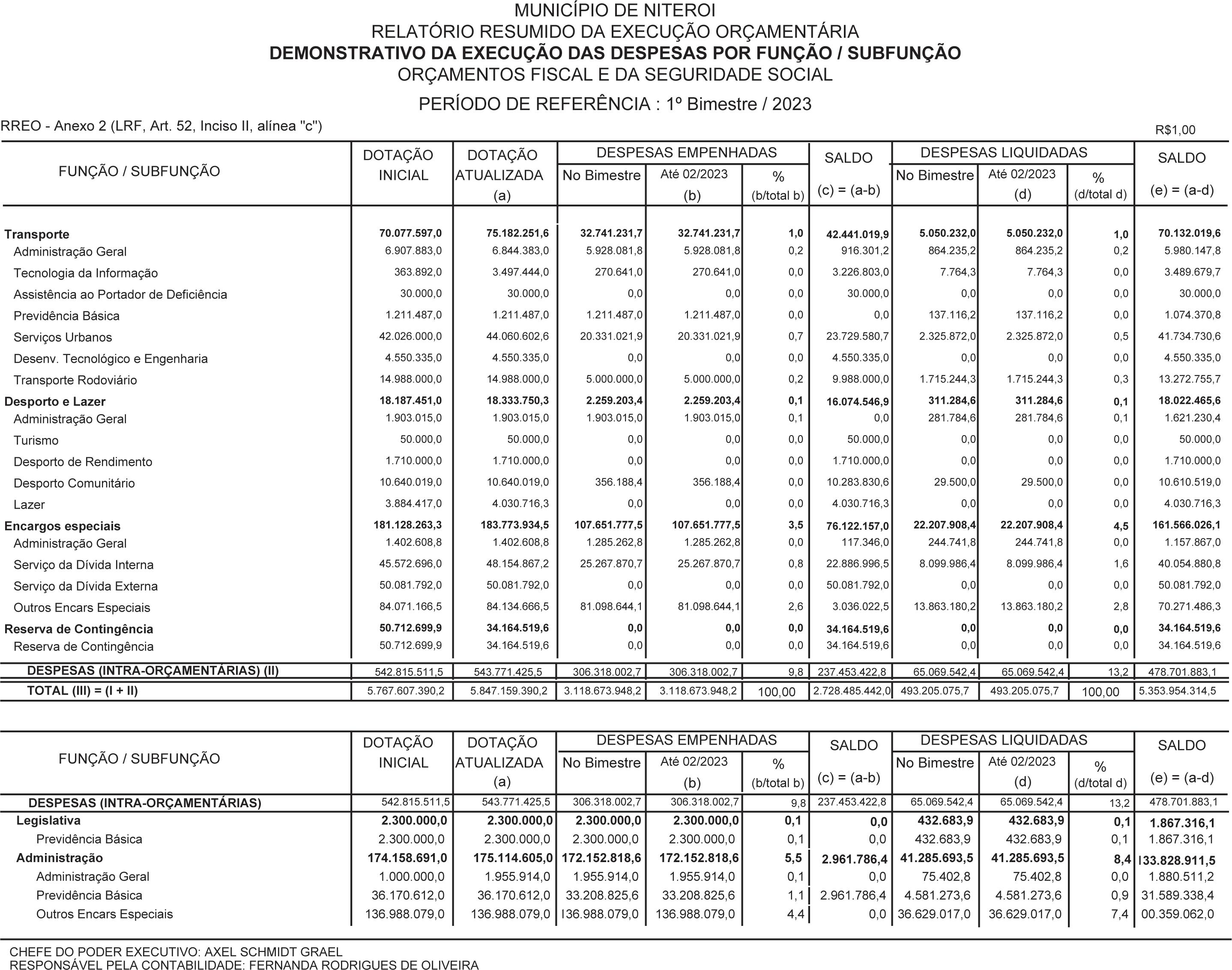 A SECRETARIA MUNICIPAL DE FAZENDA, no uso de suas atribuições legais, tendo em vista o disposto no Artigo 52 e 54 da Lei Complementar nº 101 de 04 de maio de 2000, manda republicar o Relatório Resumido de Execução Orçamentária do1º Bimestre de 2023.