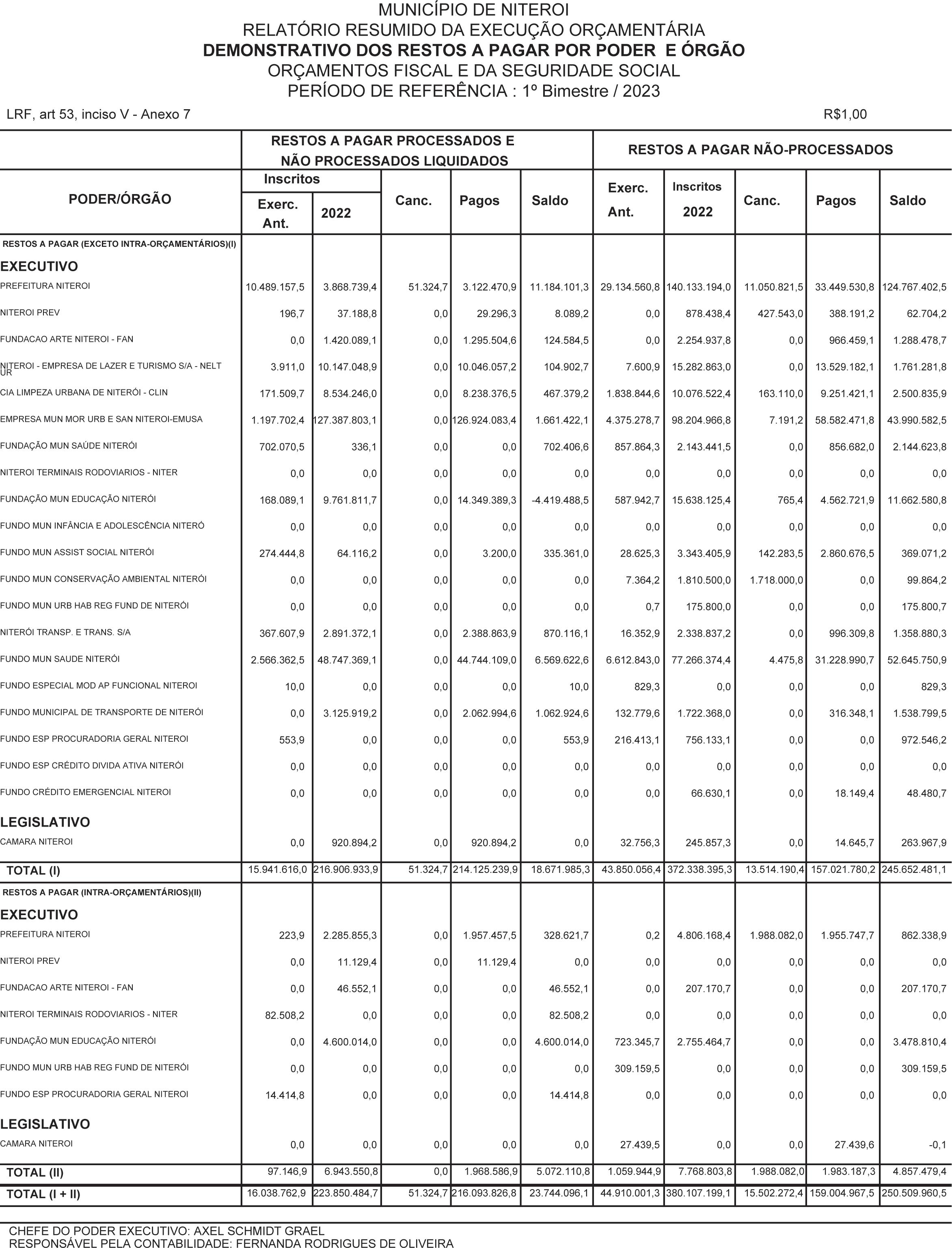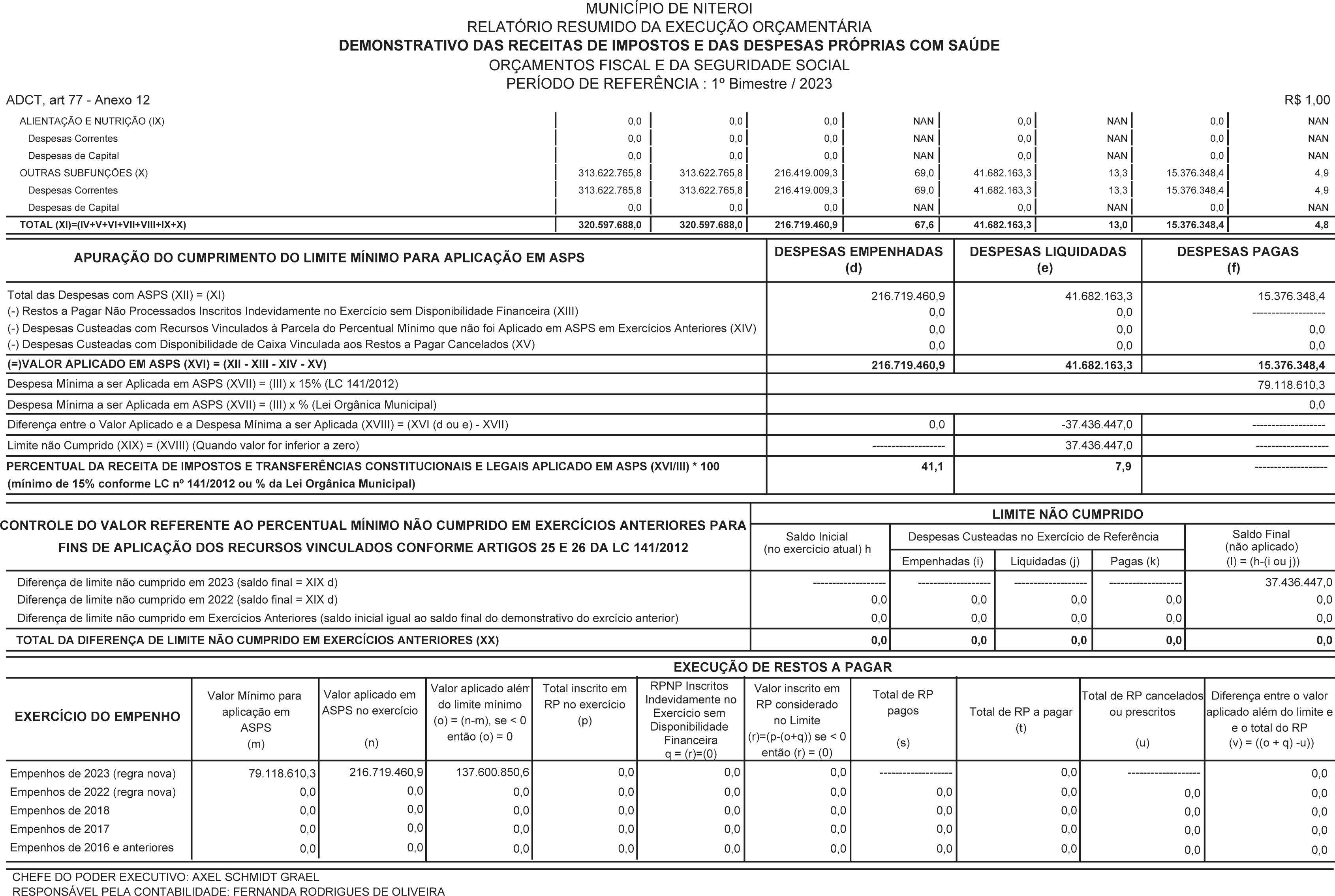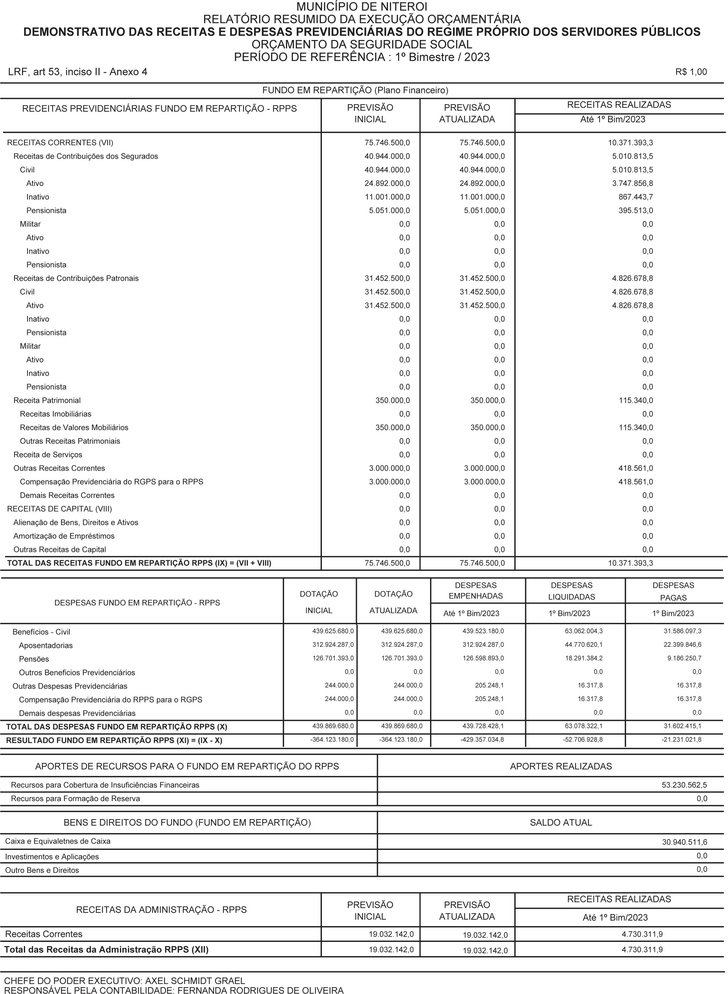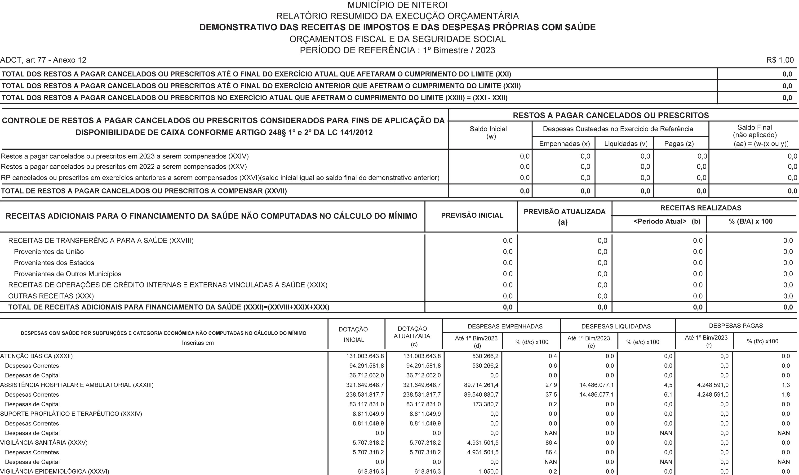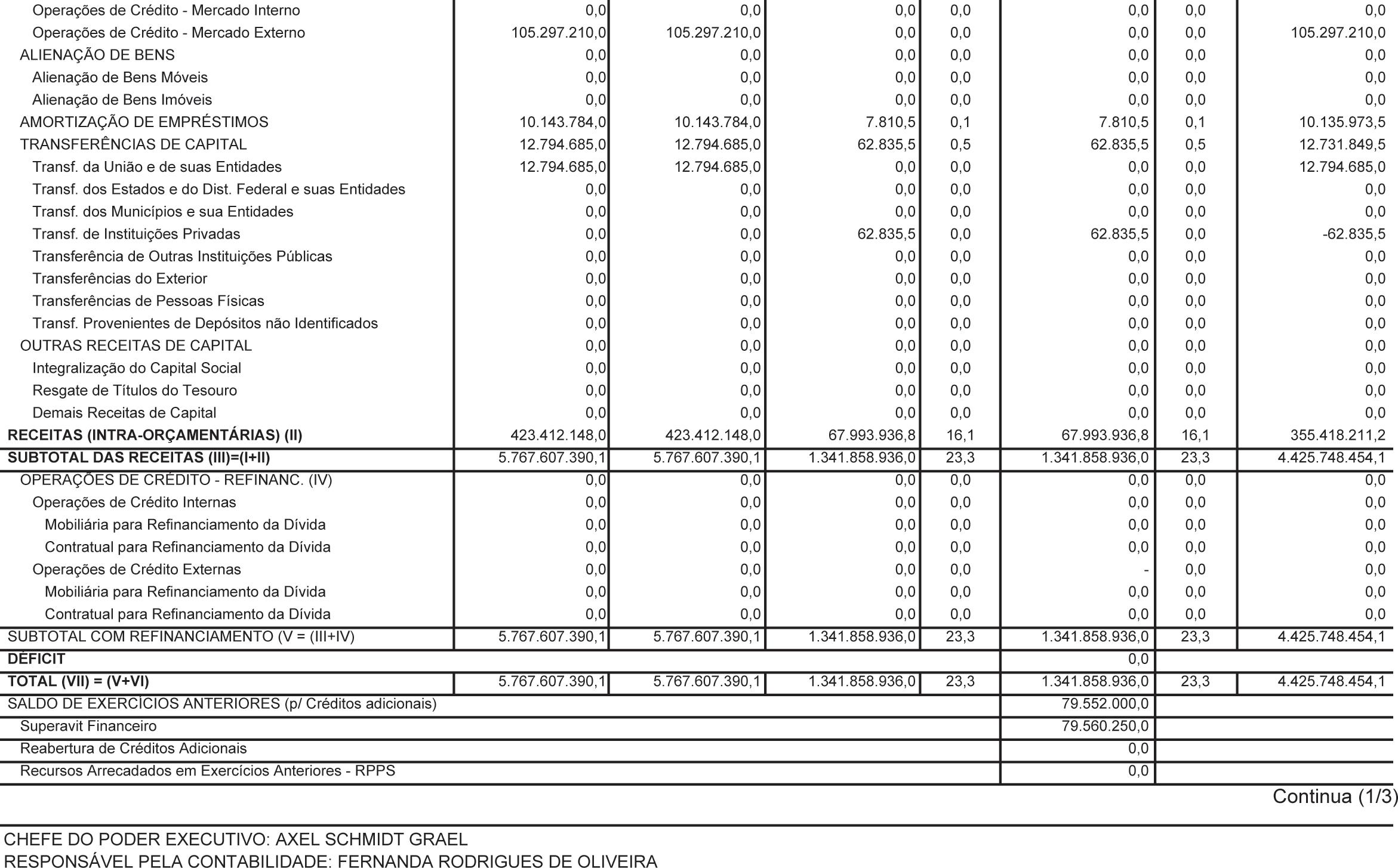 A SECRETARIA MUNICIPAL DE FAZENDA, no uso de suas atribuições legais, tendo em vista o disposto no Artigo 52 e 54 da Lei Complementar nº 101 de 04 de maio de 2000, manda republicar o Relatório Resumido de Execução Orçamentária do1º Bimestre de 2023.
