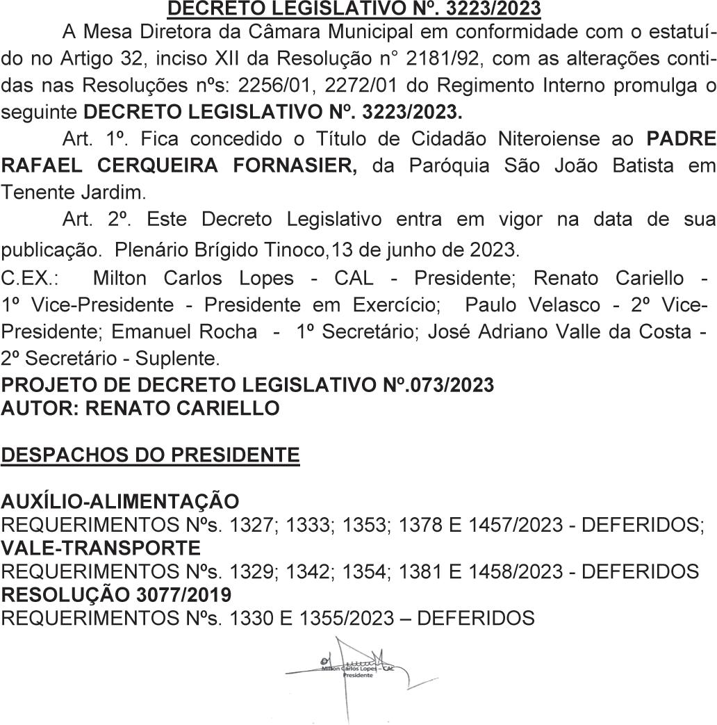 Niterói, 14 de junho de 2023. José Juvino da Silva Filho Diretoria Colegiada