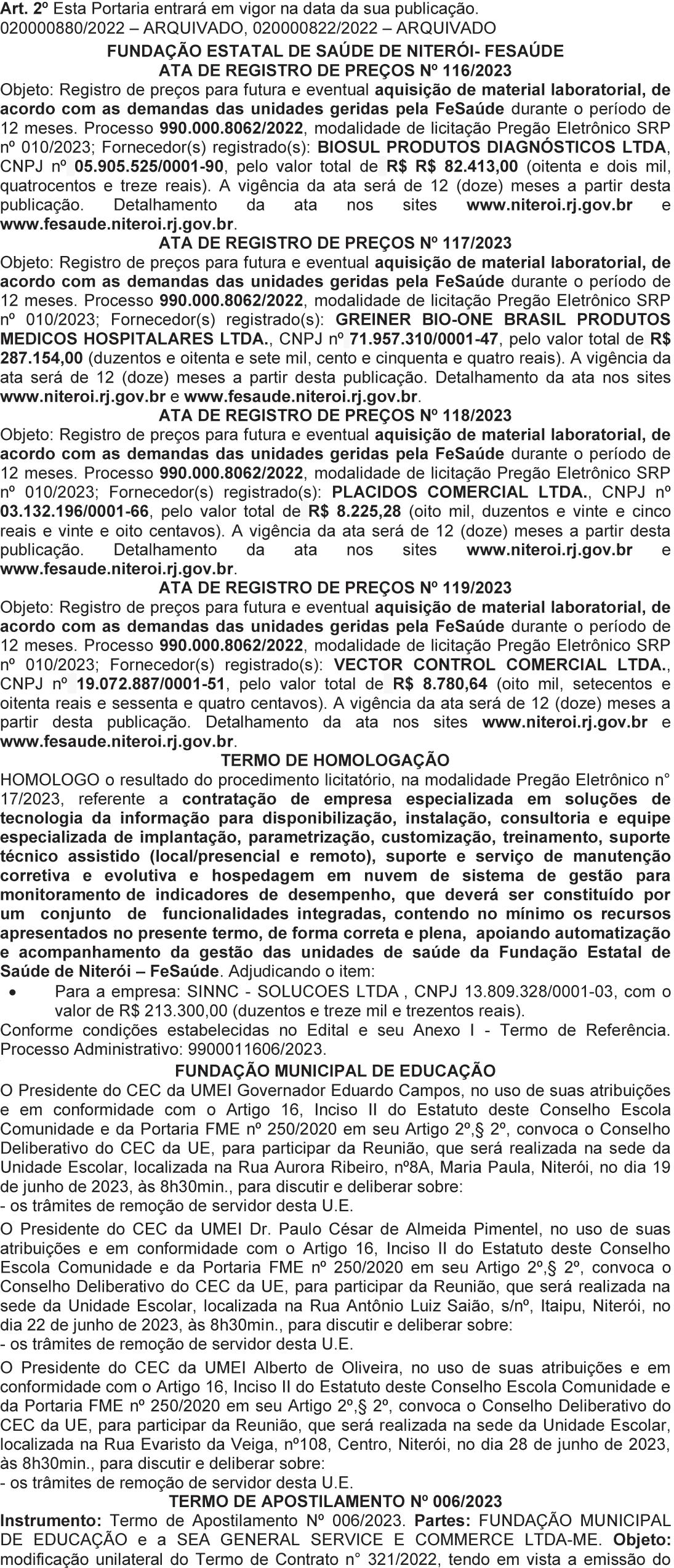Art. 2º - Registre-se e Publique-se. Rio Bonito, 12 de junho de 2023.