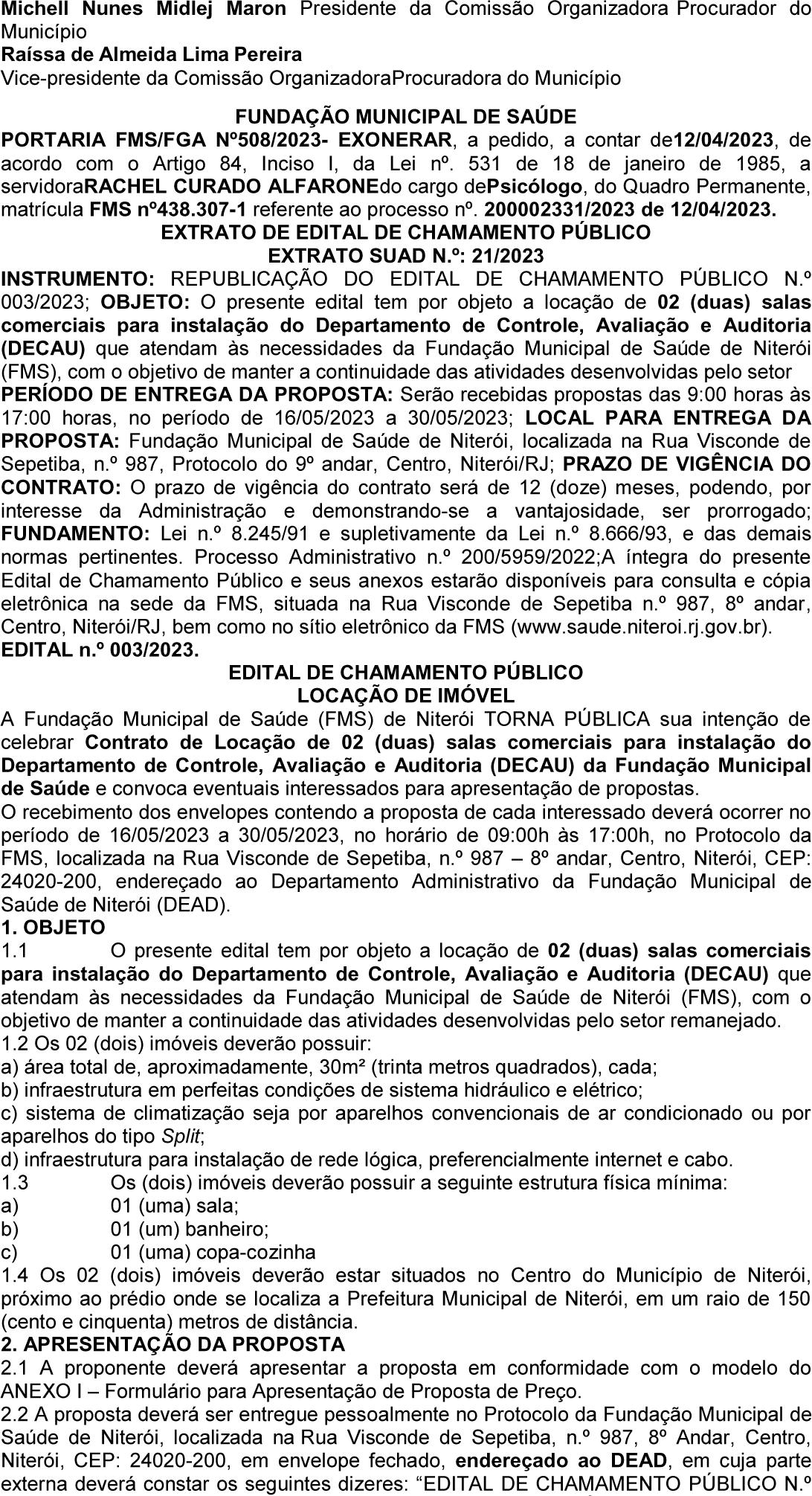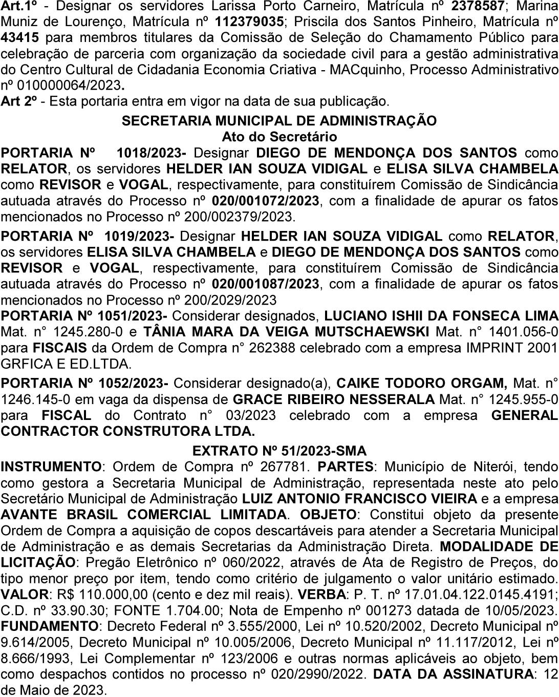 - JULIANA BALDRACO PEREIRA - MÔNICA AZEREDO DE MALTA Registre-se e Publique-se. Prefeitura Municipal de Rio Bonito, 09 de maio de 2023.