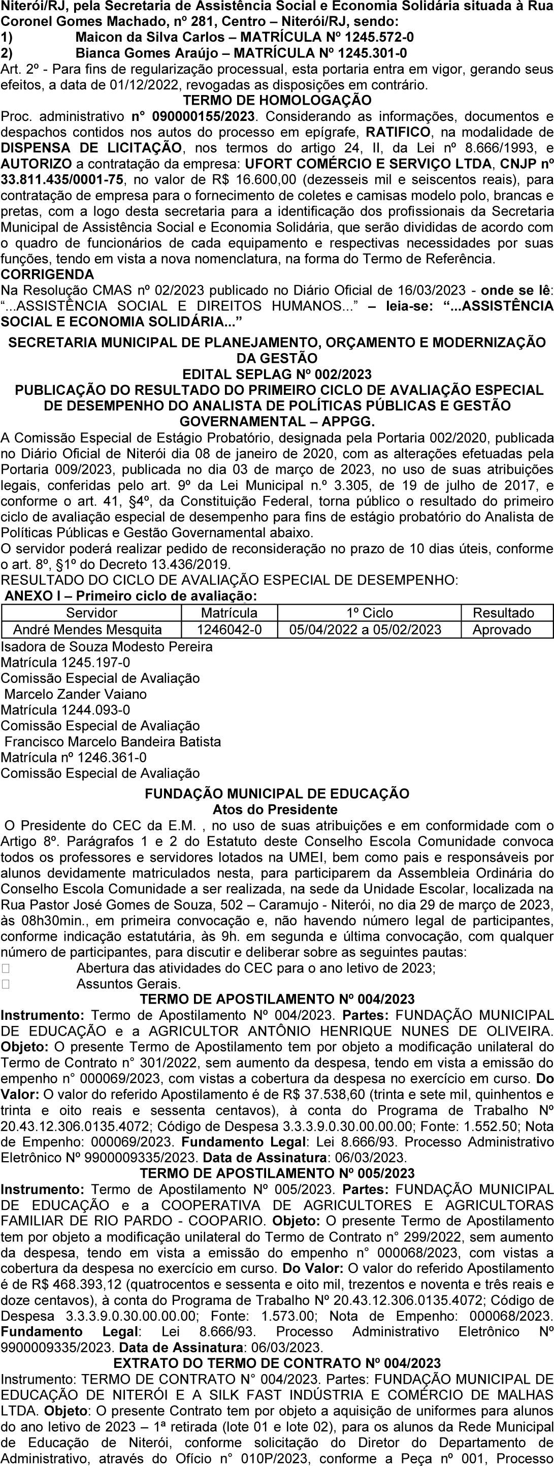 de 03 de março de 2023, revogadas as disposições em contrário. Rio Bonito, 03 de Março de 2023.