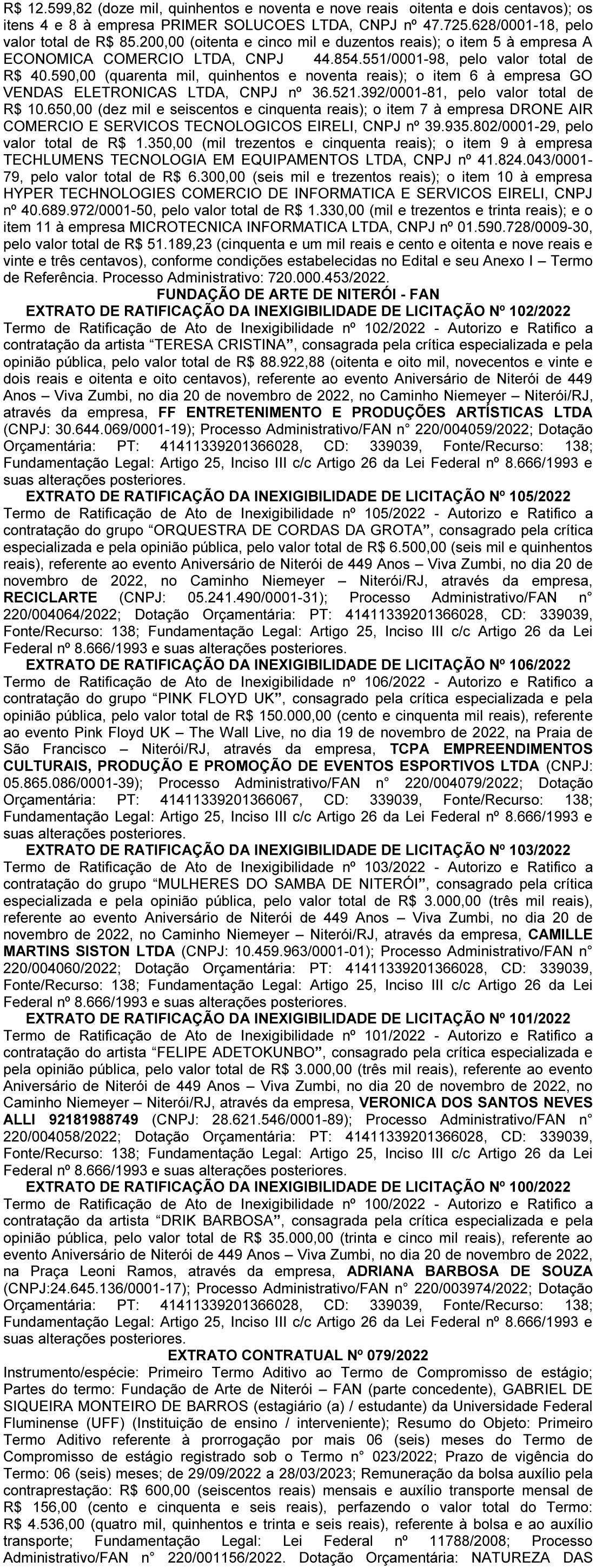 Fundado em 26 Novembro de 1936 em de 1936 Fundado em 26 Novembro de 1936 em de 1936 A TRIBUNA é uma publicação da Editora Esquema Ltda CNPJ: 30.108.948/0001-26 www.atribunarj.com.br DiretoriaDiretoria Diretoria: Jourdan Amóra Eva de Lourdes Santana Amóra Gustavo Santana Amóra Editor:Editor: Editor: Marcelo Macedo Soares EndereçoEndereço Endereço: Rua Professor Heitor Carrilho, 350F, Centro, Niterói - RJ - Cep: 24.030-230 TT Telefelef elefelef elefones: ones: ones: (021) 2719-1 886 / 2621-4986 Whatsapp: Whatsapp: (021) 97848-4642 Assinatura: assinaturaatribuna@gmail.com TT T rimestral rimestral R$ 126,00 126,00 R$ 126,00 126,00 Semestral Semestral R$