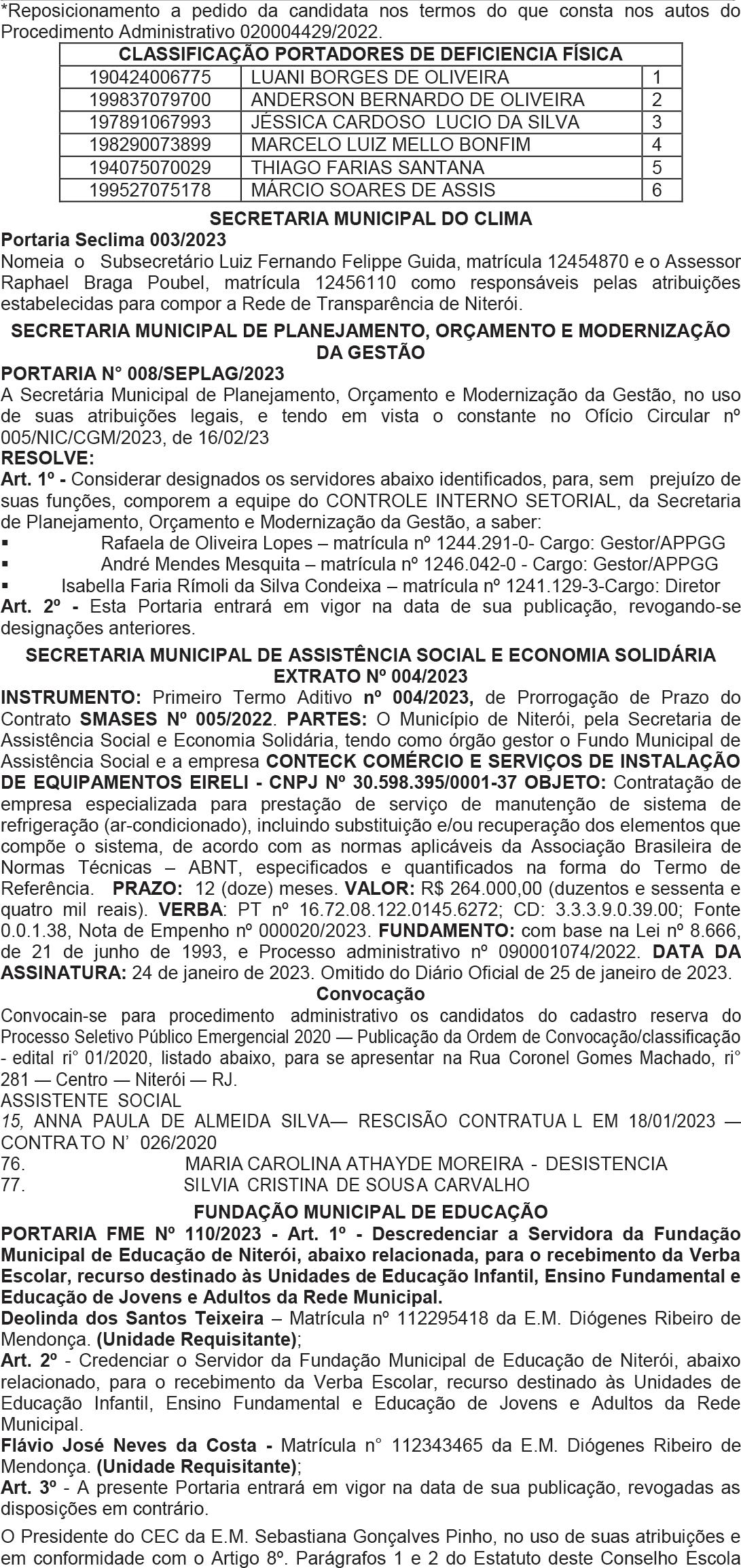 Art. 3º - Esta Portaria entra em vigor na data de sua publicação. Afixe-se, registre-se e publique-se. Instituto de Previdência dos Servidores Municipais de Rio Bonito. Rio Bonito, 28 de fevereiro de 2023