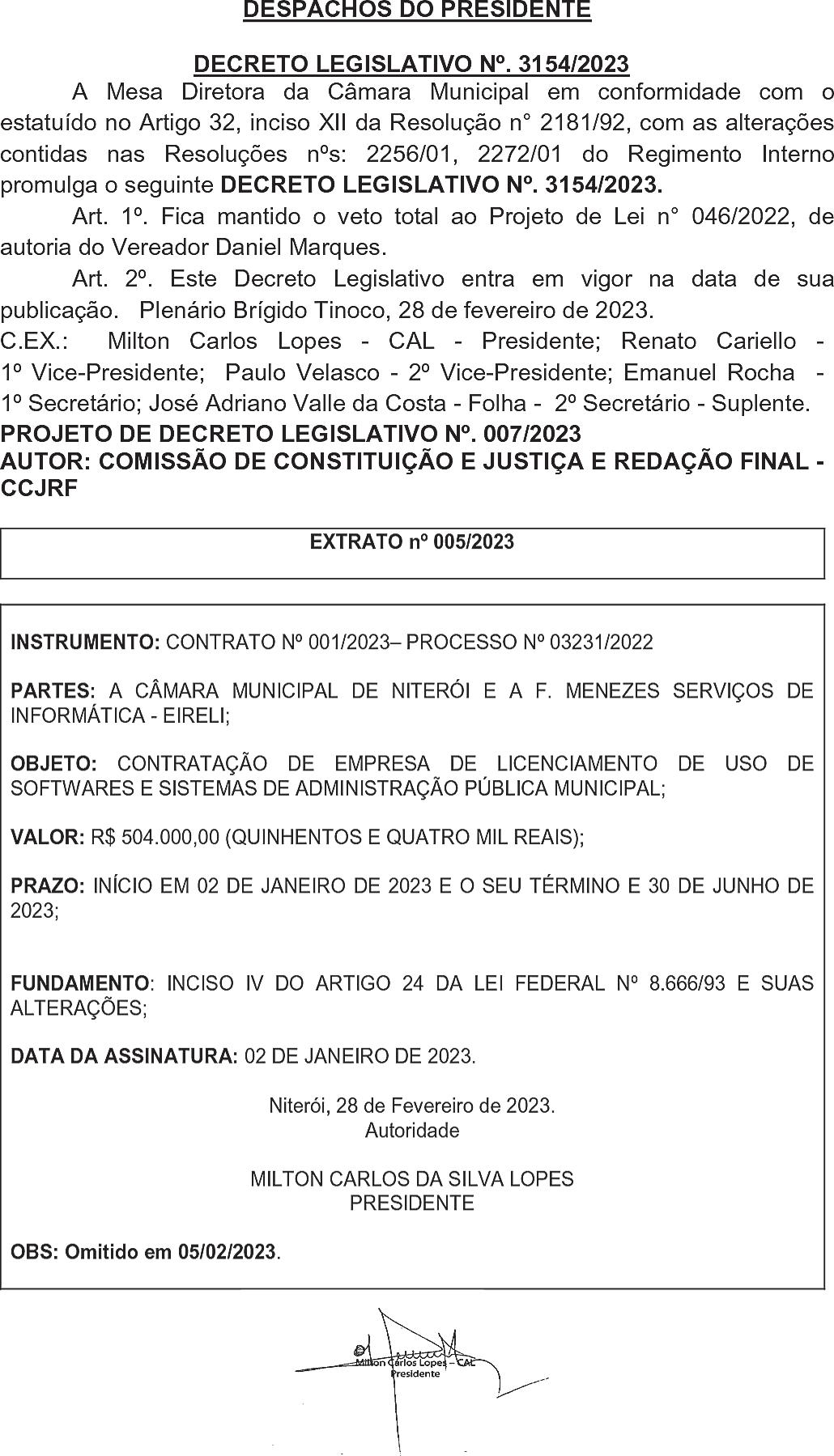 Niterói - RJ, 27 de fevereiro de 2023. Paulo Roberto de Andrade Junior Diretor Presidente