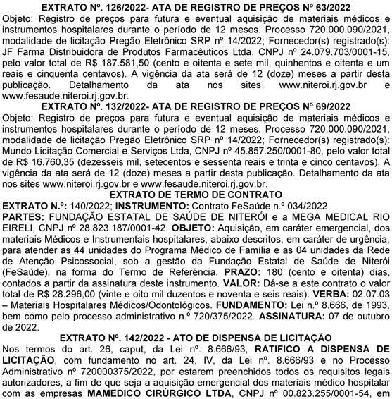 Extrato Ata de Registro de Preços nº 079/2022 Processo: 1259/2022 – Secretaria Municipal de Saúde
