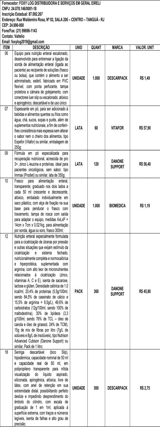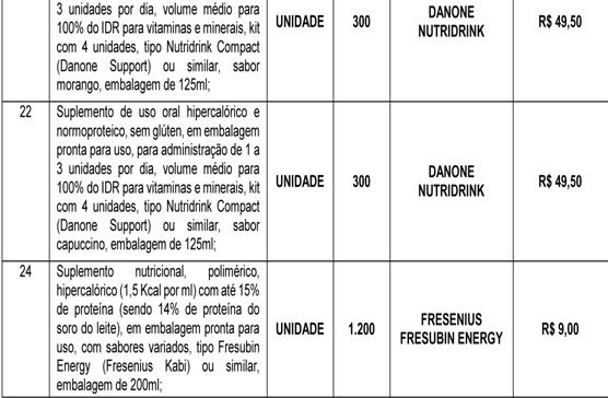 Objeto: Registro de Preços para futura aquisição de itens nutricionais para dieta enteral, pelo período de 12 (doze) meses