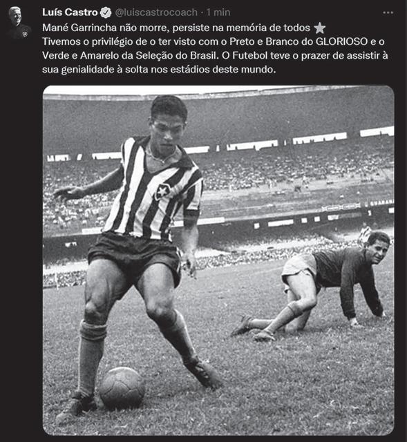 Que o maior jogador da história do Botafogo é Garrincha ninguém ousa duvidar. Mas caso estivesse vivo, certamente o eterno camisa 7 ficaria feliz com a homenagem que o Glorioso fez com fotos e vídeos e a postagem do treinador Luís Castro nas redes sociais que recebeu em homenagem ao aniversário de 89 anos.