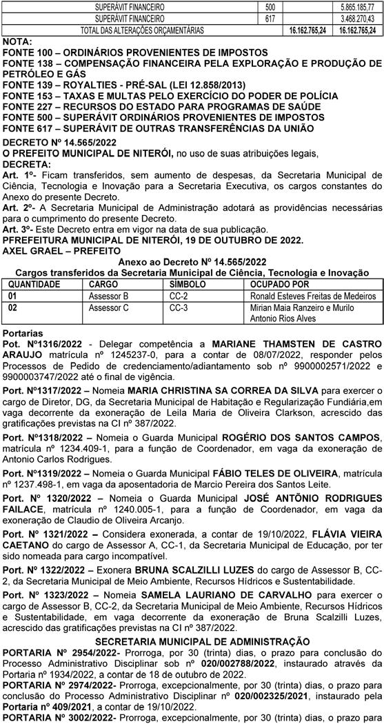 Art. 2º - Esta Portaria entra em vigor a contar de 19 de Outubro de 2022. Registre-se e Publique-se.