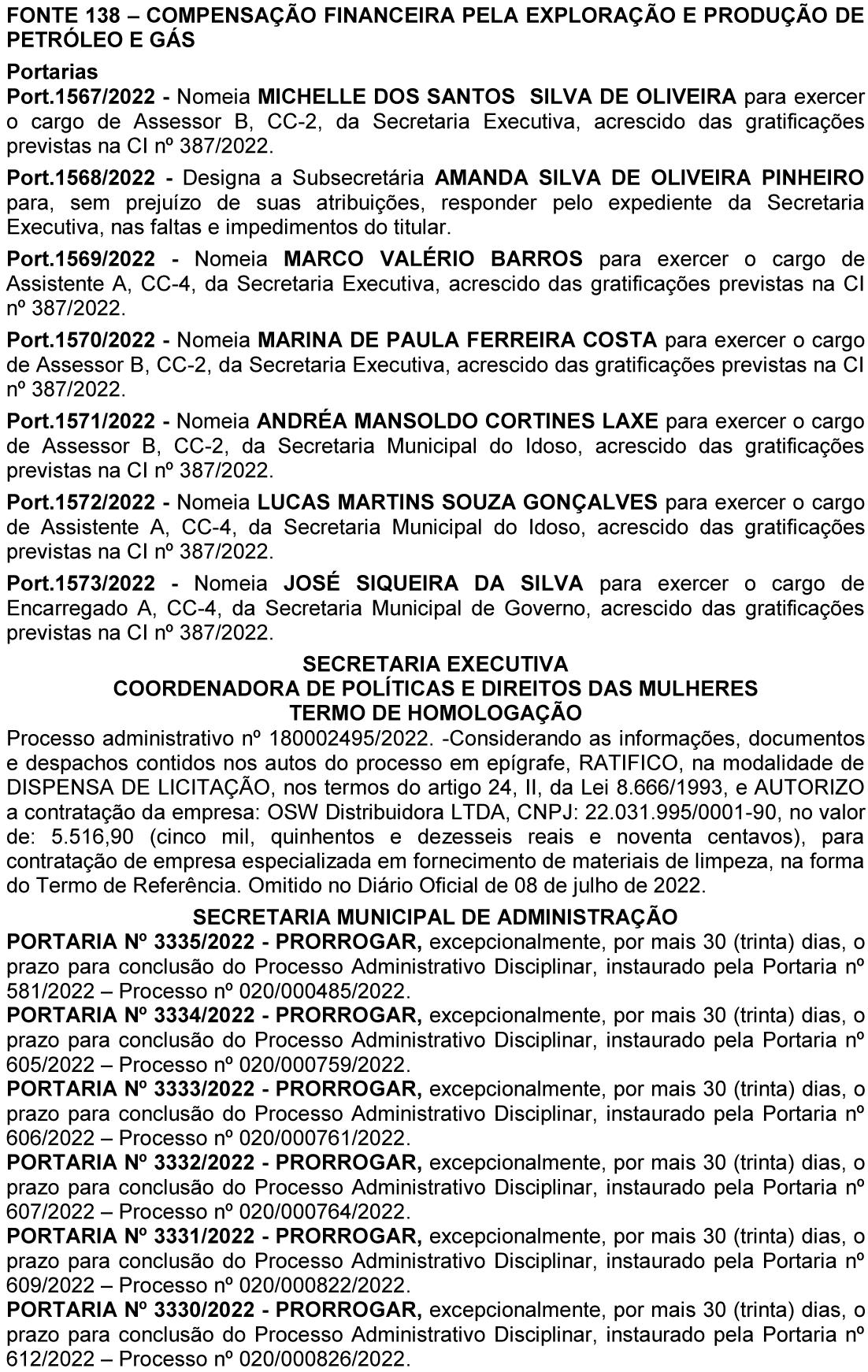Ata de Registro de Preços nº 072/2022 do Processo 2509/2022, PP nº 016/ 2021, publicada no Jornal A Tribuna, Edição nº 35.737, na data de 12/08/ 2022, Página 08; mantem-se os preços registrados de acordo com o praticado no mercado.