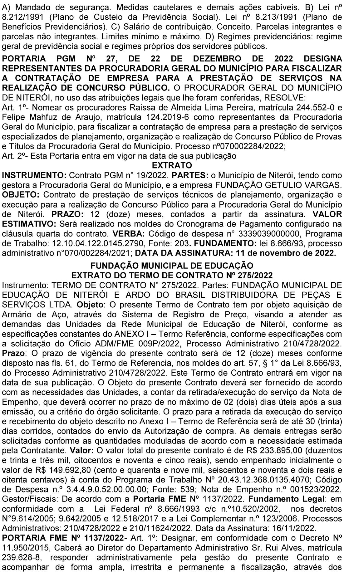 deia). Lícita a acumulação de cargos pelo servidor (a) nos termos do art. 37, XVI, c, CF da Constituição Federal; Rio Bonito, 19 de Dezembro de 2022.