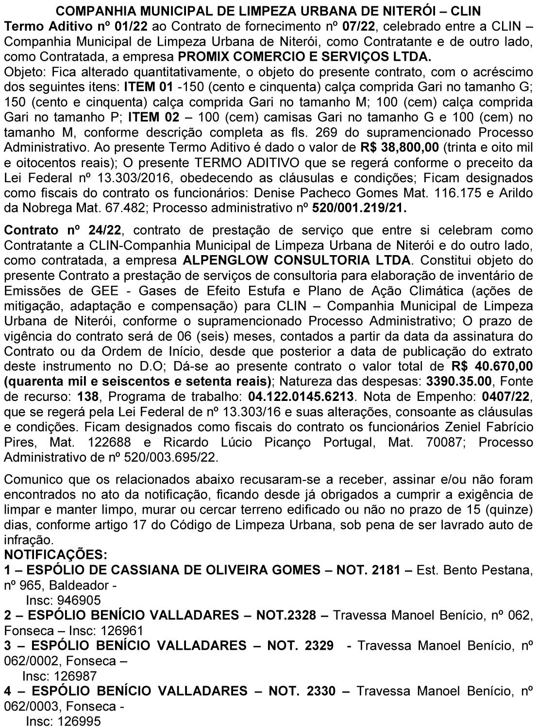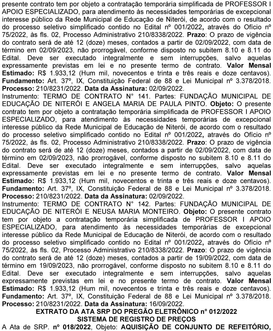 Fica o prazo do Contrato SME nº 094/2018, aditado pelo período de 04 (quatro) meses, contados a partir de 05/09/2022, conforme justificativas apresentadas pela Secretaria Municipal de Educação, do Processo Administrativo nº 3517/2017, termos do Art. 57, inciso II da Lei 8.666/93.