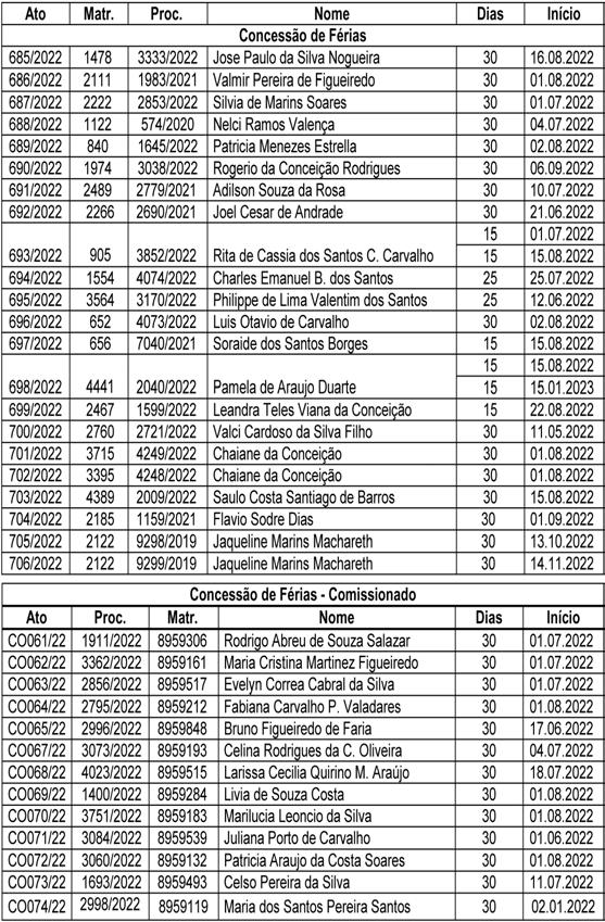 O Secretário Municipal de Administração no uso de suas atribuições legais, resolve emitir os Atos de Concessão abaixo relacionados: