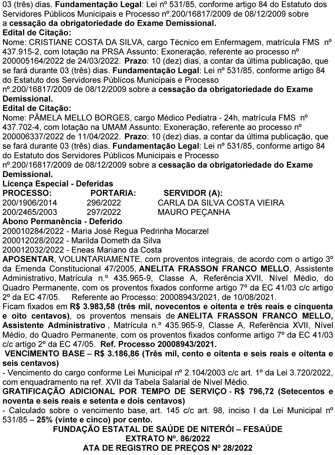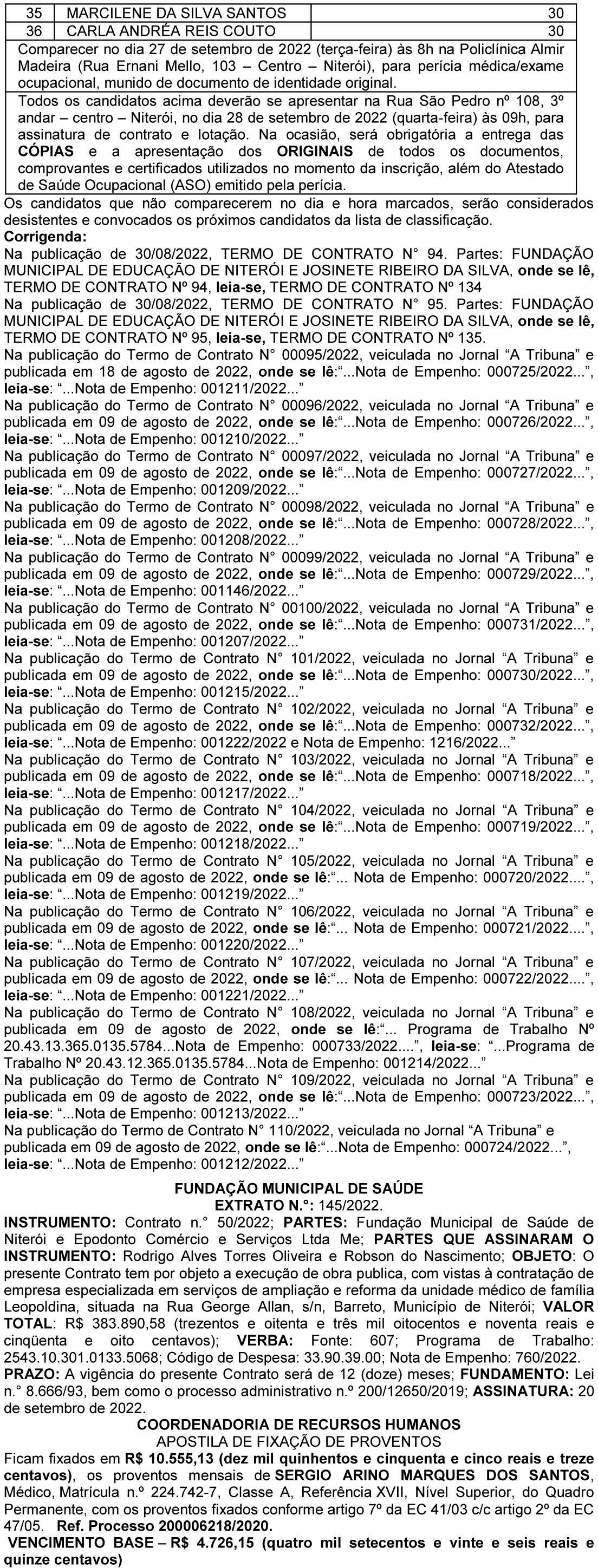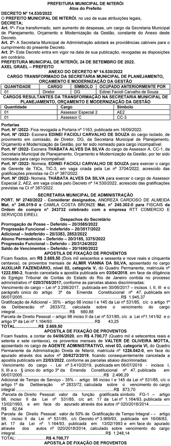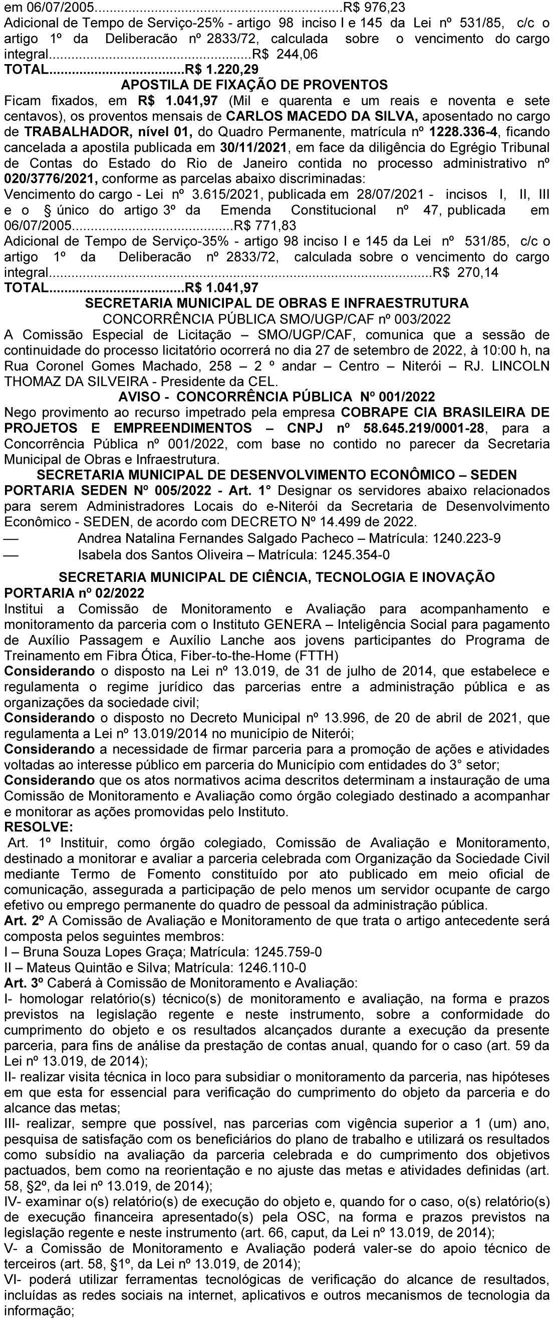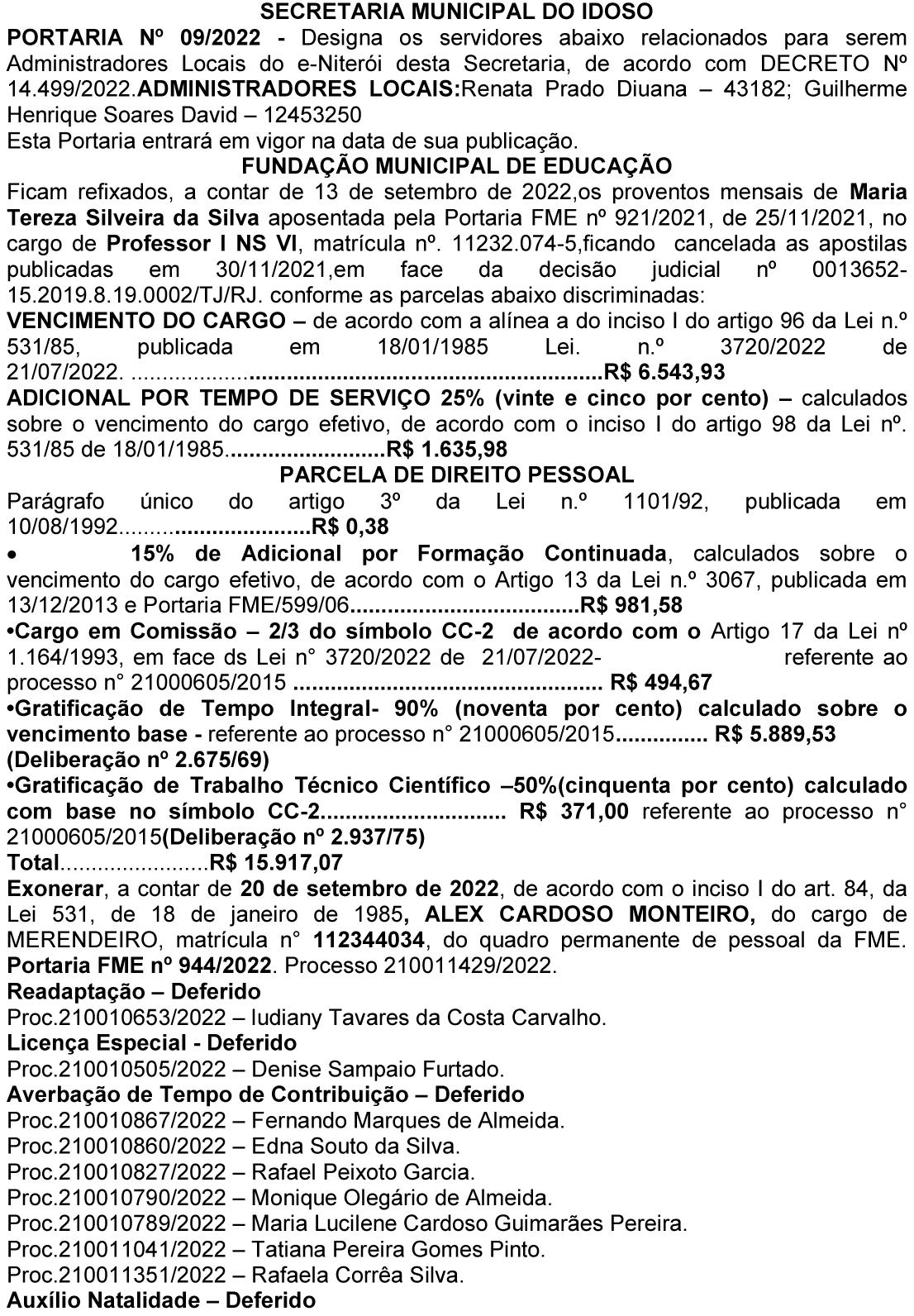 Rio Bonito, em 23 de setembro de 2022. Julio Aguiar Pimentel Secretário Municipal de Administração Matr. 8961425