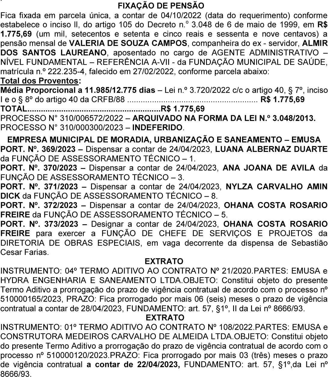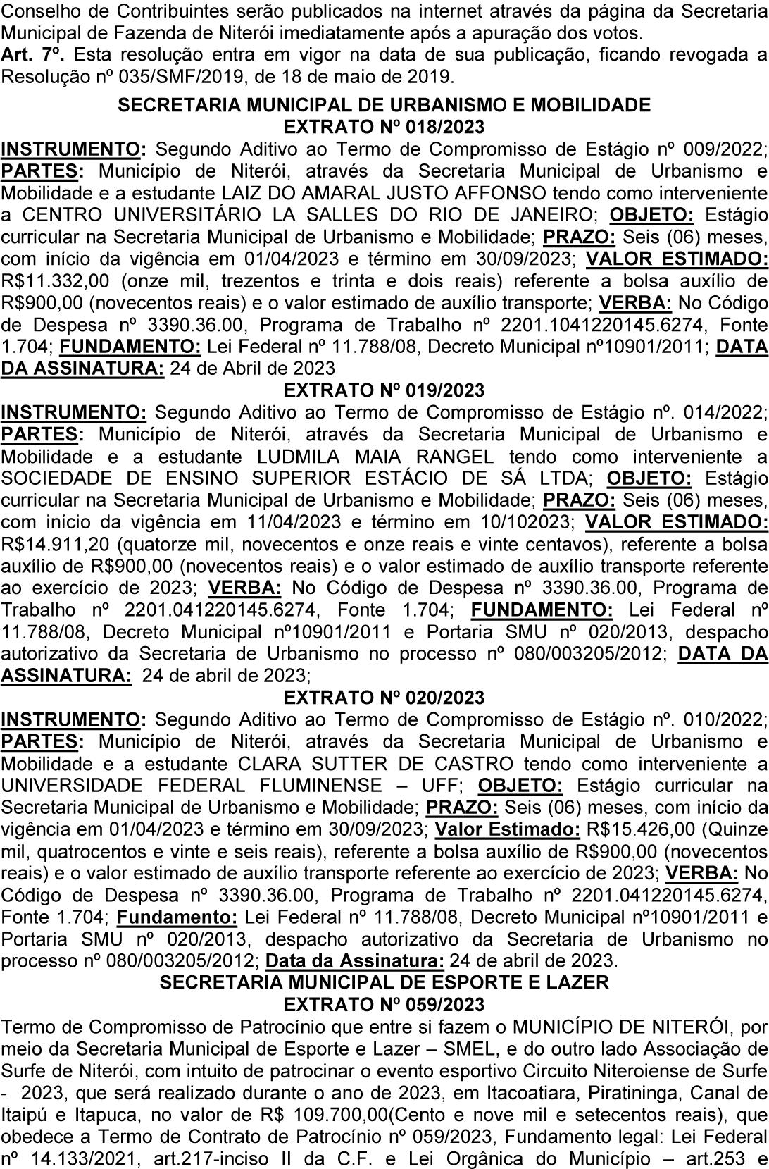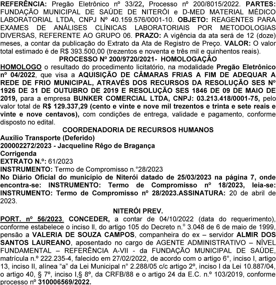 Registre-se e Publique-se Prefeitura Municipal de Rio Bonito, 24 de Abril de 2023. Antônio Bruno B. do Nascimento SECRETÁRIO MUNICIPAL DE ADMINISTRAÇÃO Matr. 3456