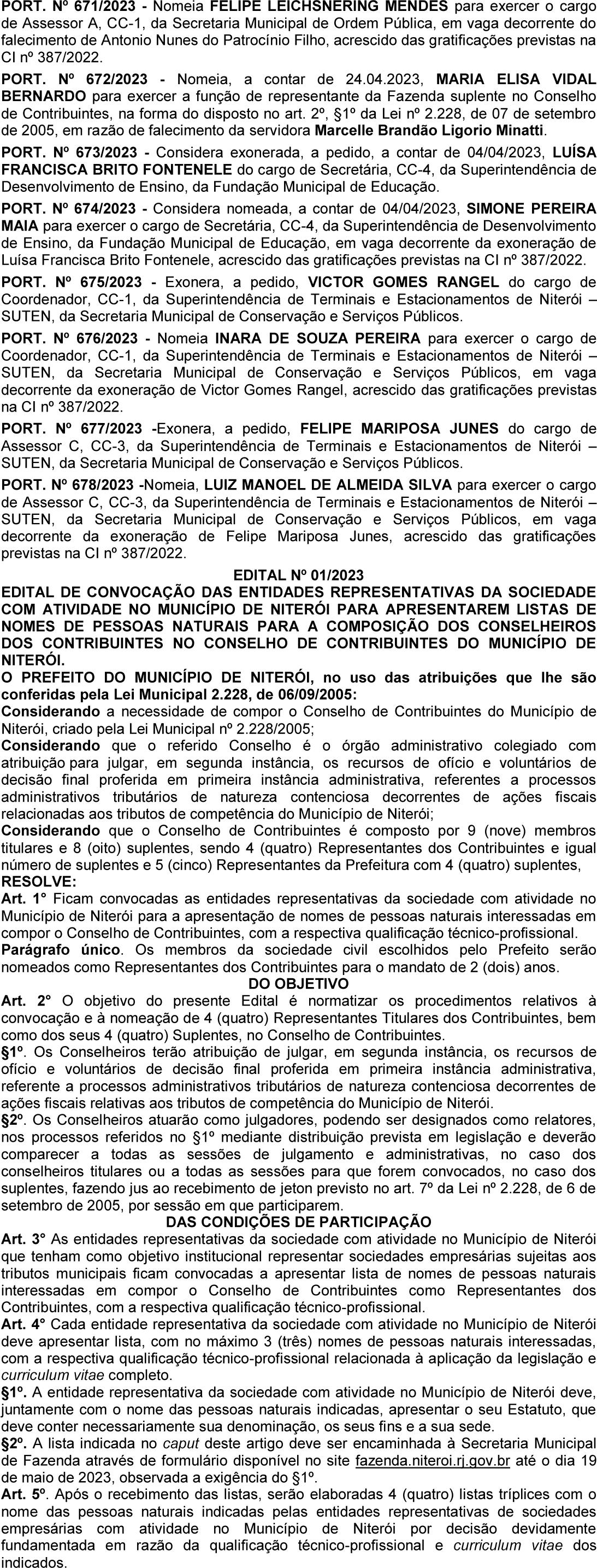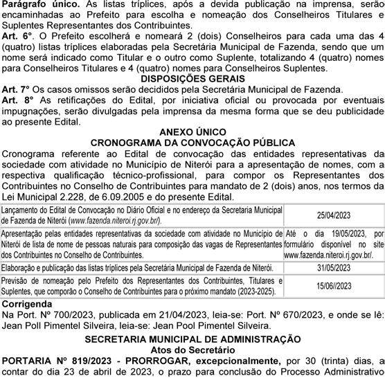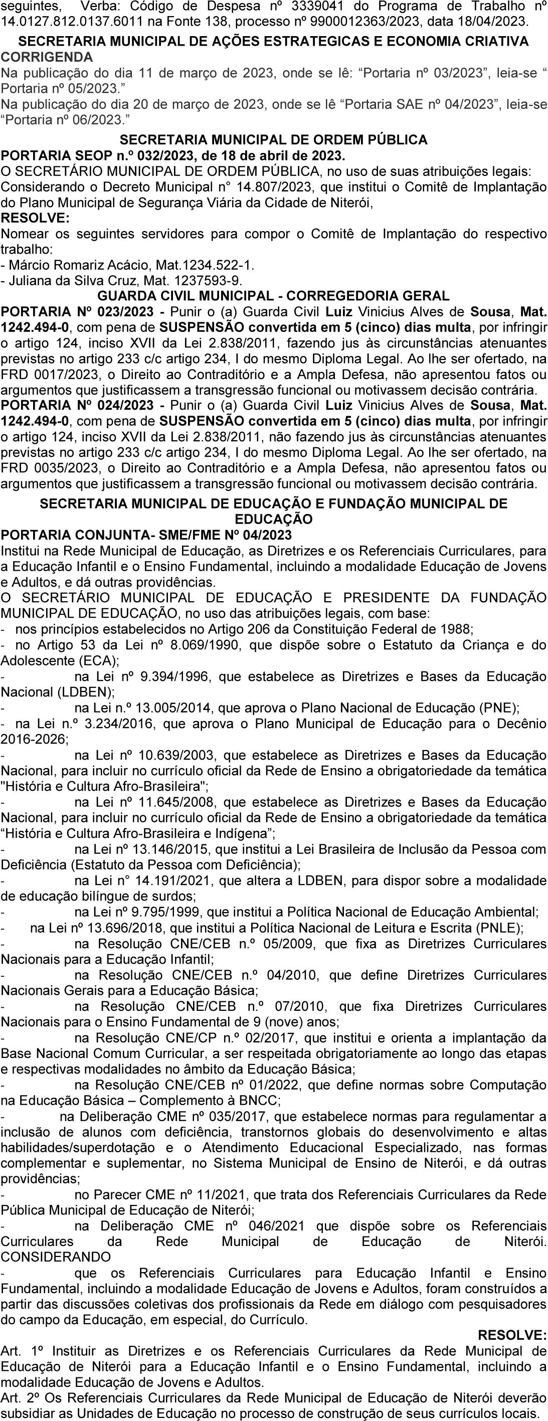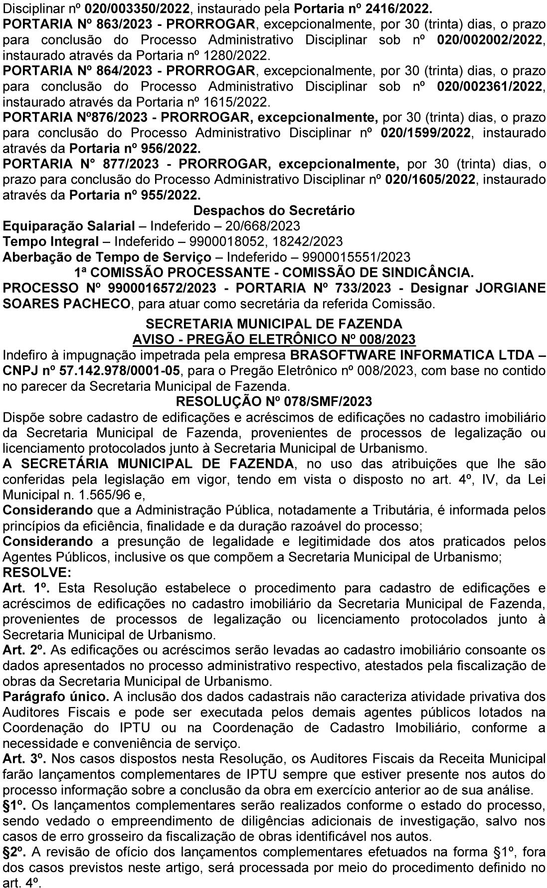 Registre-se e Publique-se Prefeitura Municipal de Rio Bonito, 24 de Abril de 2023. Antônio Bruno B. do Nascimento SECRETÁRIO MUNICIPAL DE ADMINISTRAÇÃO Matr. 3456