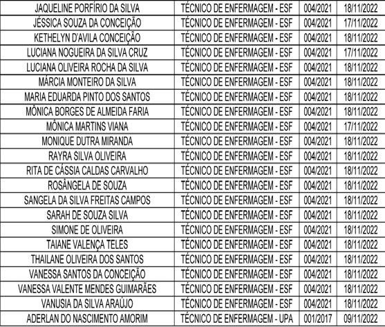 A Secretaria Municipal de Administração, no uso de suas atribuições legais, torna público a RESCISÃO dos convocados da Secretaria Municipal de Saúde, nos termos dos respectivos editais indicados, dos seguintes profissionais, conforme abaixo discriminado: