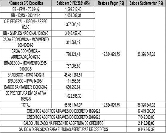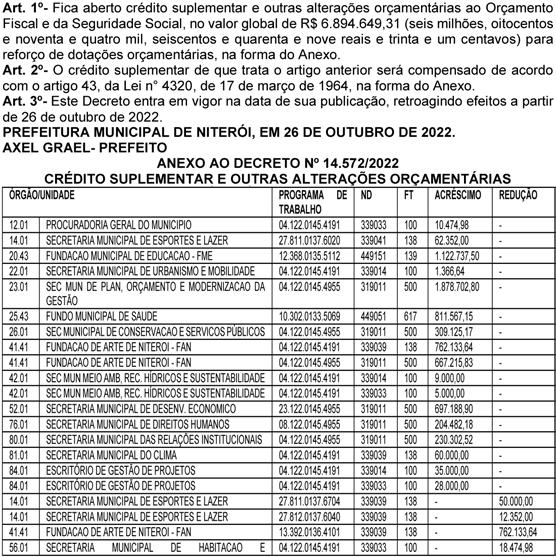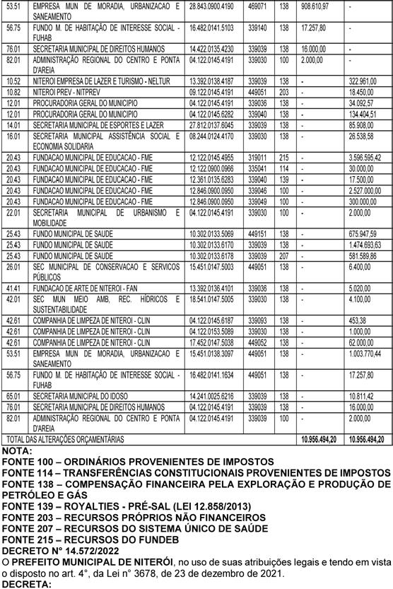 Art. 3º Em decorrência deste decreto fica alterado o Quadro de Detalhamento das Despesas das referidas Unidades Orçamentárias. Art. 4º O presente Decreto nº 208/2022 entrará em vigor na data de sua publicação, ou afixação em átrio público, surtindo seus efeitos legais a partir de 11 de agosto de 2022, revogadas as disposições em contrário. Rio Bonito, 11 de Agosto de 2022. LEANDRO PEREIRA NETTO PREFEITO MUNICIPAL