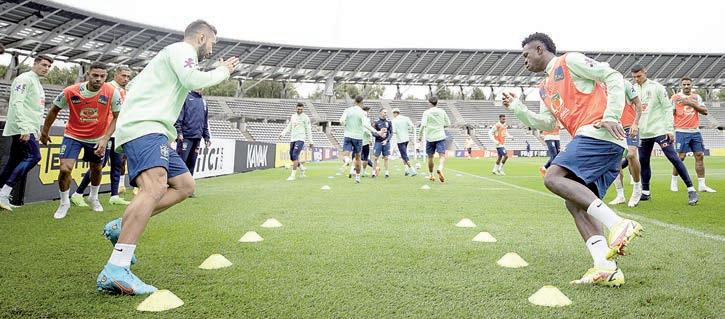 O Brasil deve entrar em campo com a seguinte formação: Alisson, Danilo, Marquinhos, Thiago Silva, Alex Telles; Casemiro, Fred, Lucas Paquetá e Raphinha; Neymar e Richarlison.