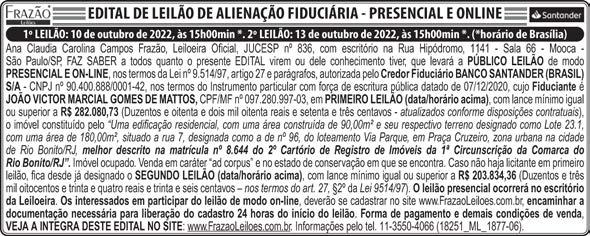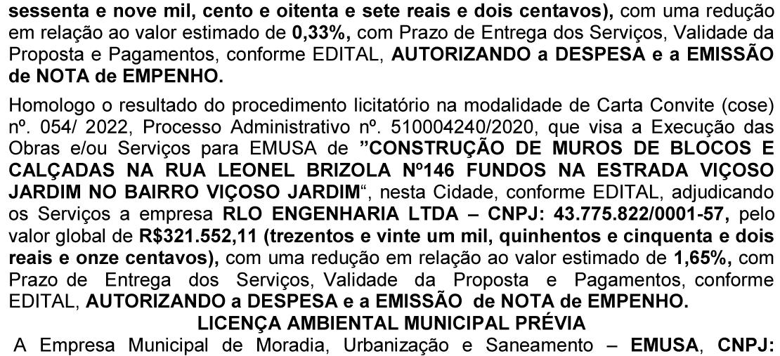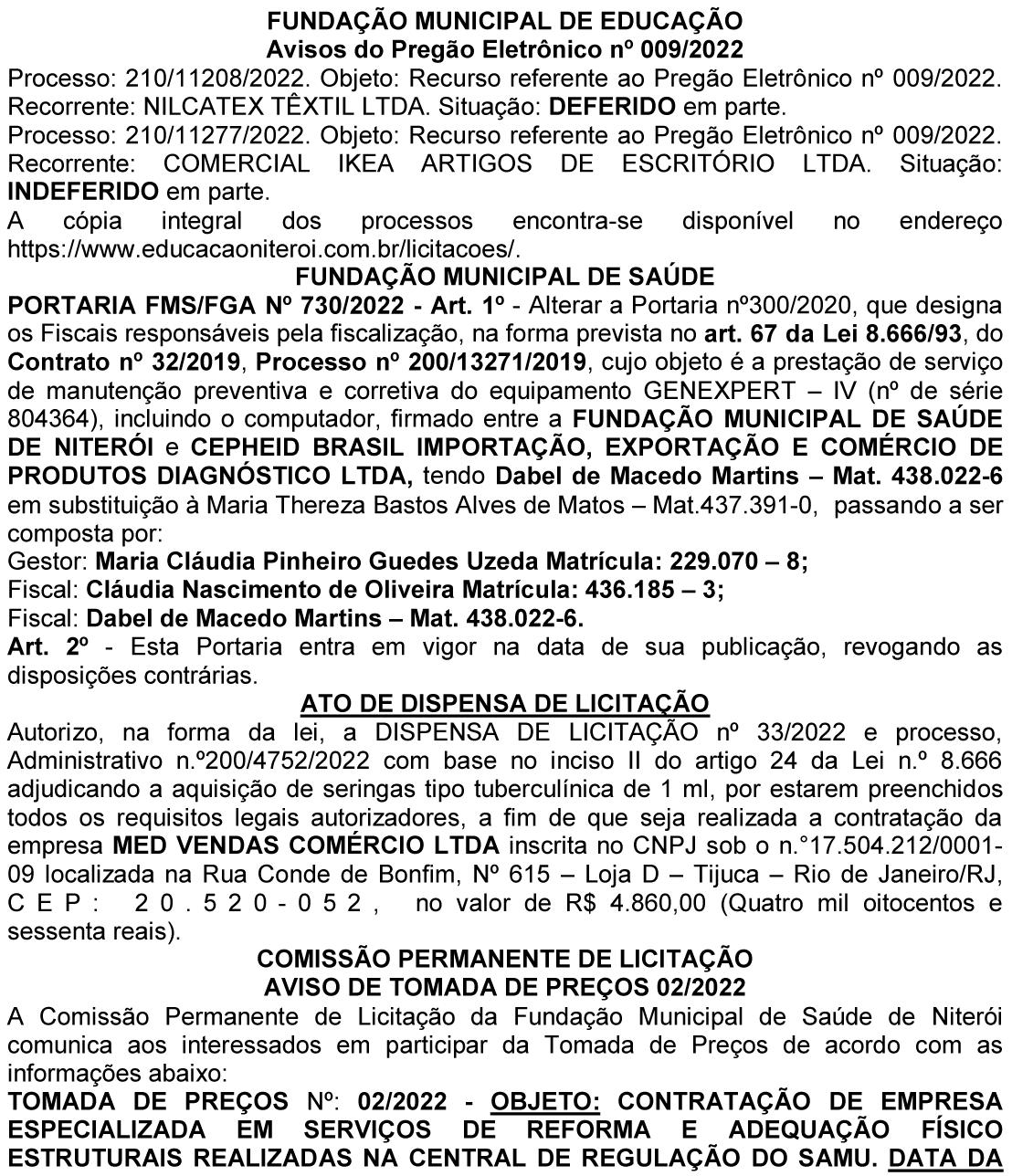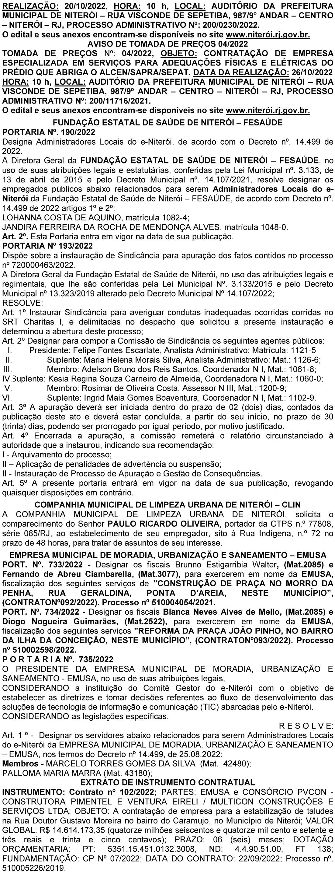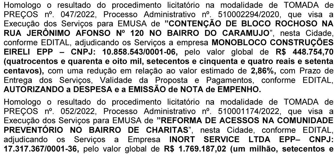 à Rua Ramira Schueller nº 10 – Retiro Schueller – Rio Bonito – RJ. O Edital completo será obtido no endereço acima citado a partir de sua publicação. Custo do Edital: 1 resma de papel A4. Outras informações poderão ser obtidas também no endereço supra, ou pelo telefone (021) 2734-0276 Ramal 2131, diariamente das 10:00 às 16:00 horas. Rio Bonito, 26 de setembro de 2022.