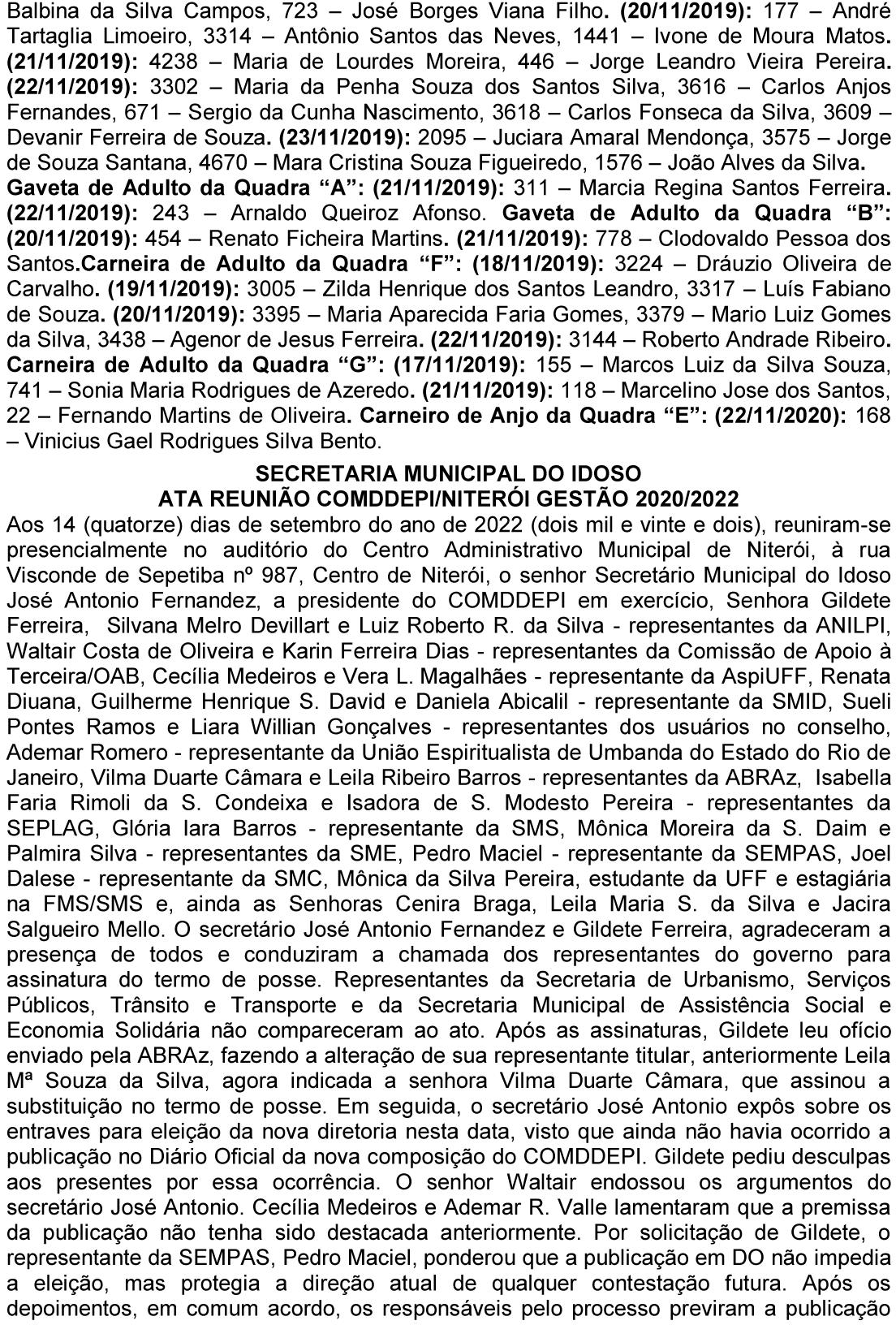 10 TERÇA-FEIRA, 27 DE SETEMBRO DE 2022 O Centro Esportivo Guanabara, com sede à Rua Profª Emilse, 80, São Lourenço, NiteróiRJ, por seu Diretor Presidente Hildo Paulino Ribeiro, no uso de suas atribuições e visando o interesse dos sócios Proprietários, convoca para participarem da Assembléia Geral Extraordinária a realizar-se no dia 01/10/2022, às 15hs:00 em primeira convocação com a presença de 50% dos sócios mais 1, e às 15hs:30, em segunda convocação com qualquer presença, à Av. Jansen de Mello, 49, Centro, Niterói-RJ (posto de gasolina). Sua presença é importante para definirmos o destino do imóvel da sede do Centro Esportivo. CENTRO ESPORTIVO GUANABARA CNPJ: 19.649.357/0001-30 COMUNICADO Hildo Paulino Ribeiro Diretor Presidente