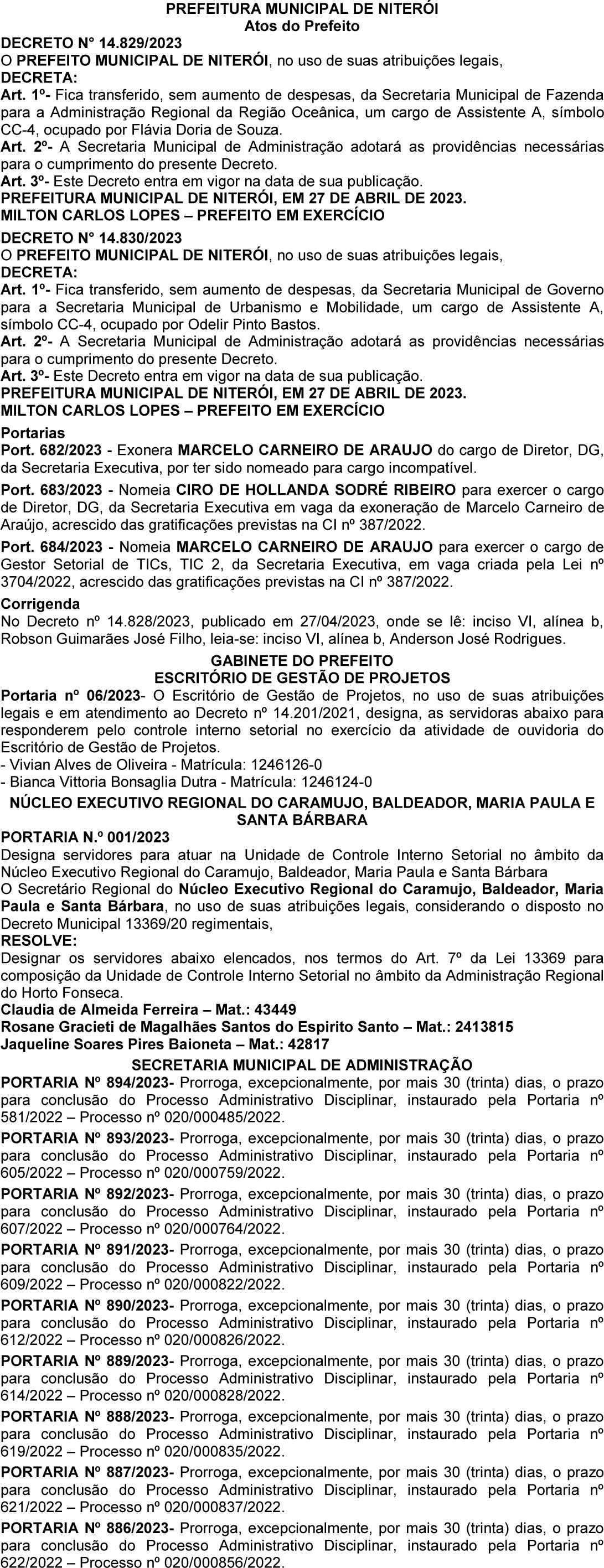 O Prefeito Municipal de Rio Bonito, Estado do Rio de Janeiro, no uso de suas atribuições legais, Considerando solicitação da Câmara Municipal de Itaboraí, acerca de cessão da servidora municipal para aquele Órgão, nos termos do Ofício GP/CMI nº 042/2023,