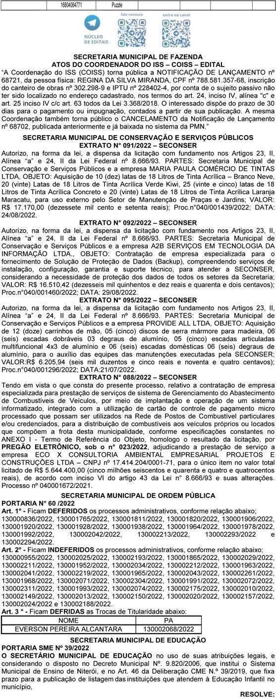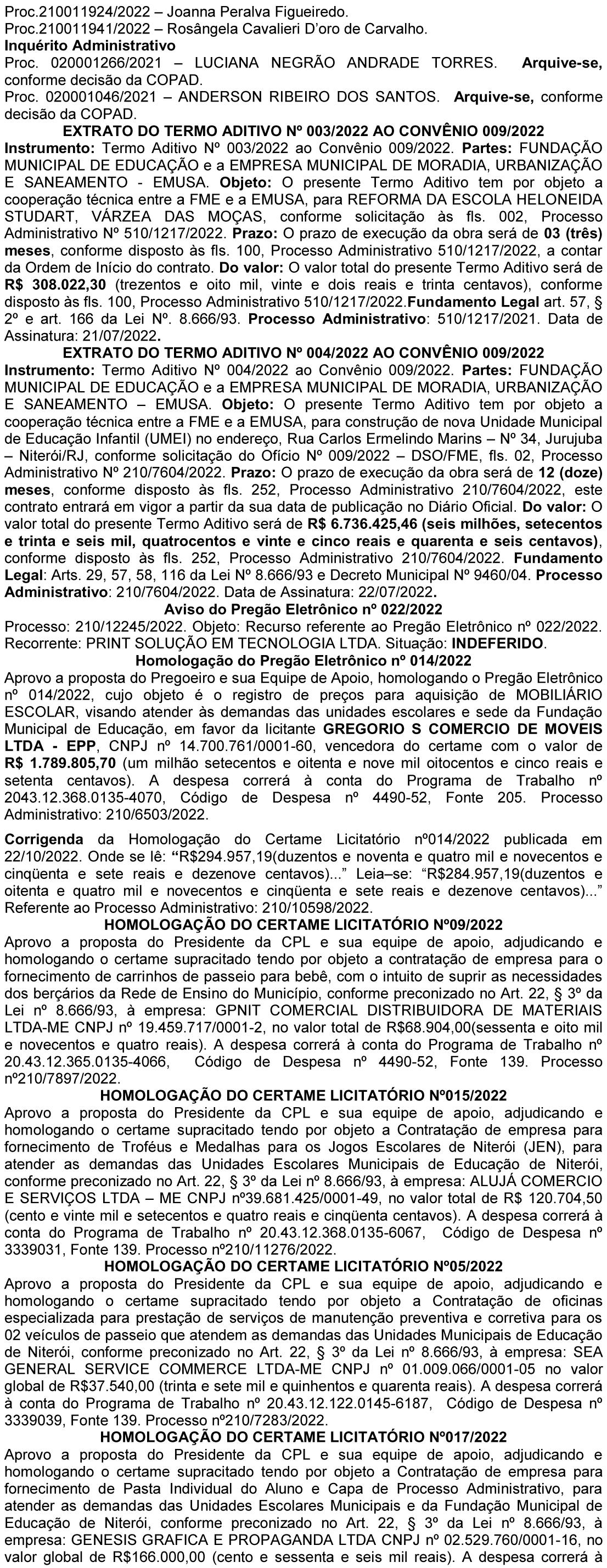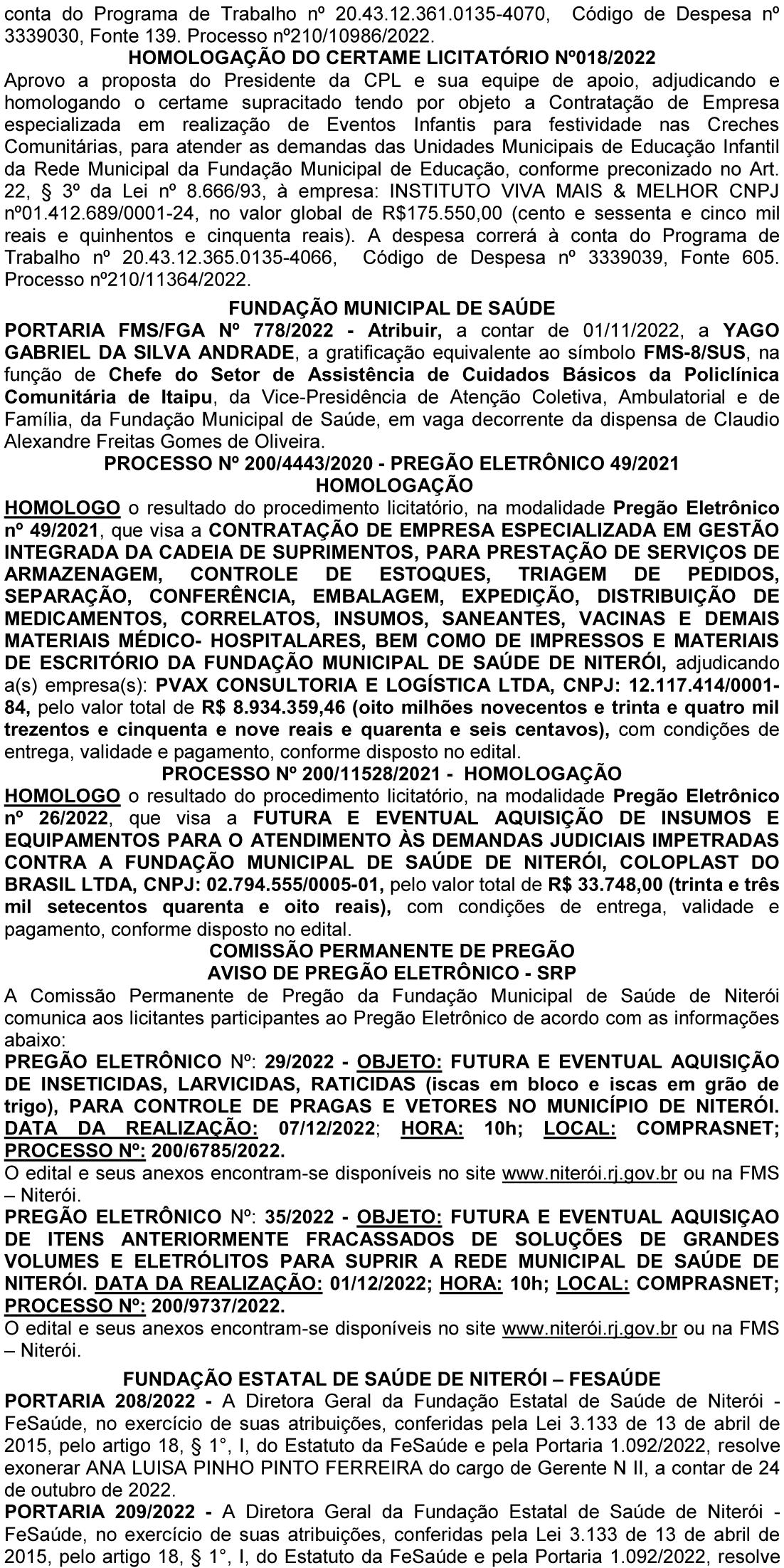 Rio Bonito, 28 de outubro de 2022 Júlio Aguiar Pimentel Secretário Municipal de Administração Matr. 8961425