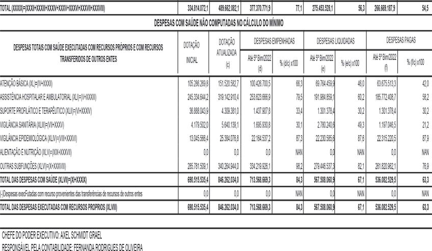 A SECRETARIA MUNICIPAL DE FAZENDA, no uso de suas atribuições legais, tendo em vista o disposto no Artigo 52 e 54 da Lei Complementar nº 101 de 04 de maio de 2000, manda republicar o Relatório Resumido de Execução Orçamentária do 5º Bimestre de 2022.