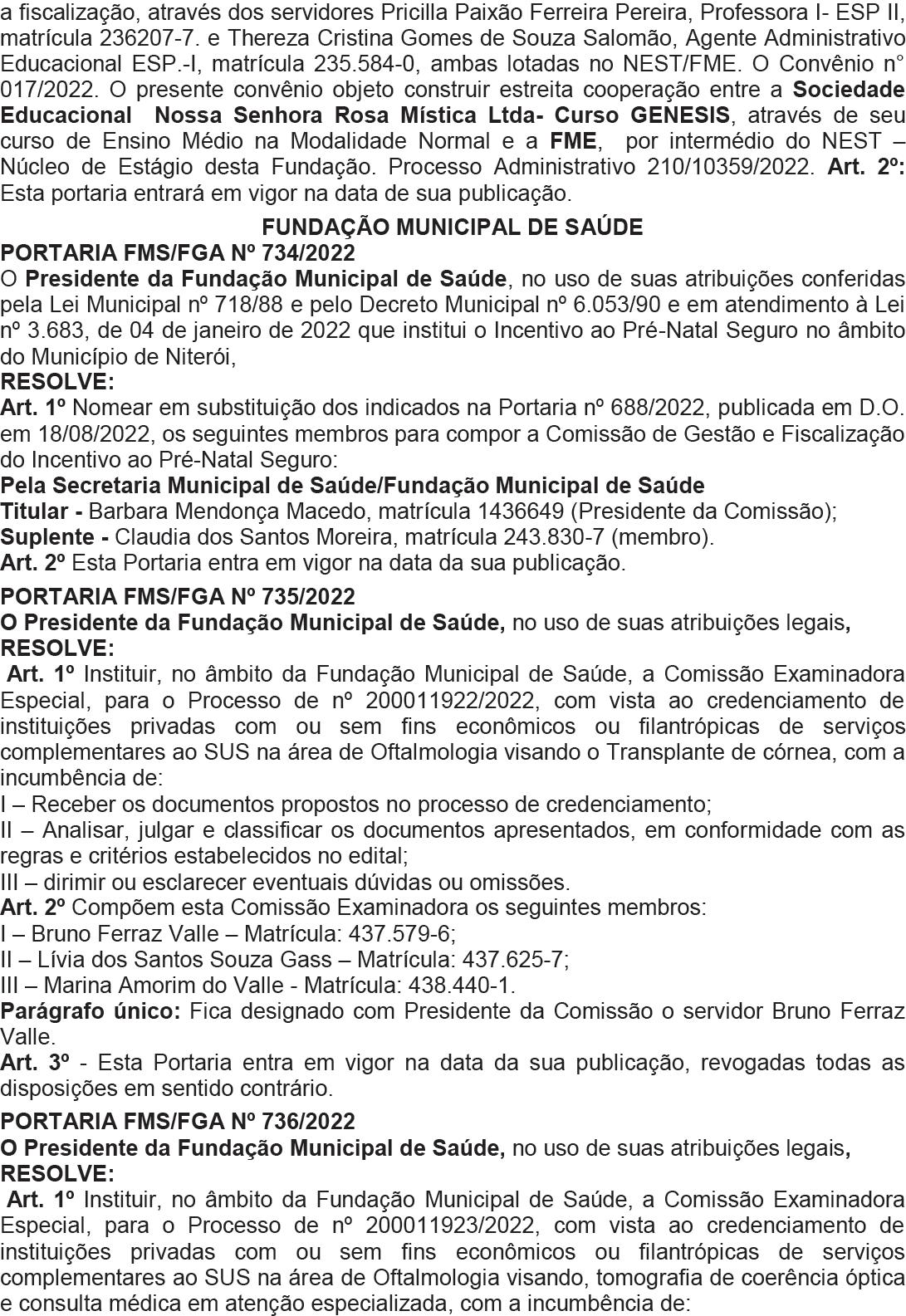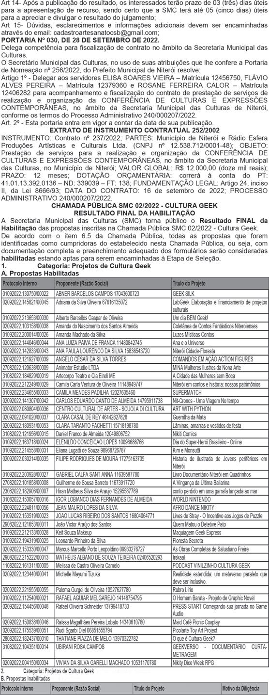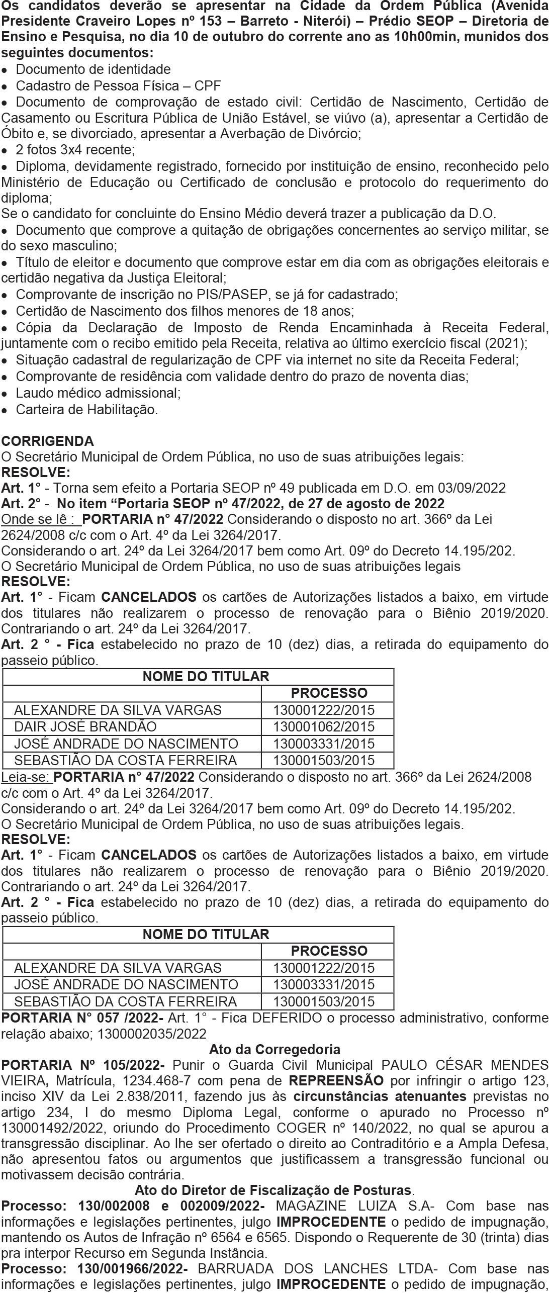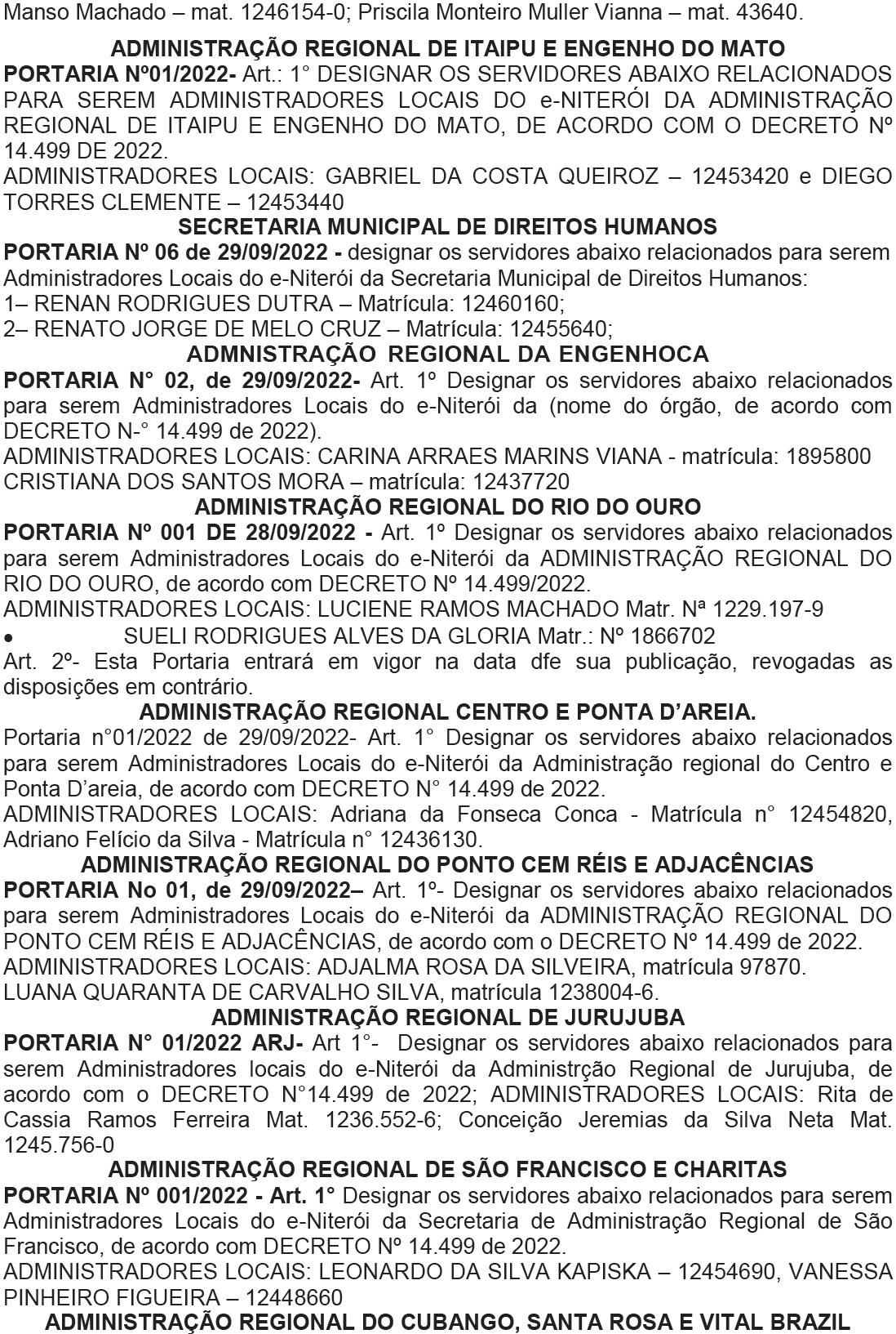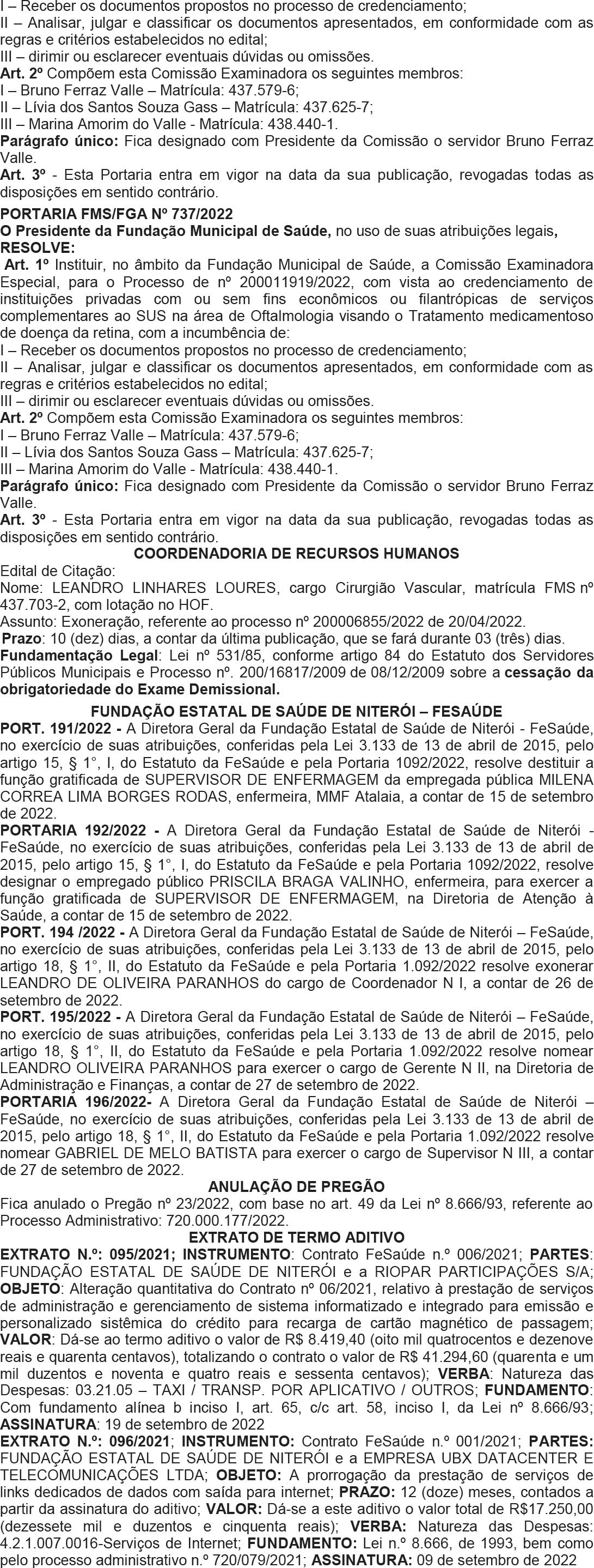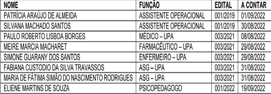 A Secretaria Municipal de Administração, no uso de suas atribuições legais, torna público a RESCISÃO dos convocados da Secretaria Municipal de Saúde, nos termos dos respectivos editais indicados, dos seguintes profissionais, conforme abaixo discriminado: Rio Bonito, 28 de setembro de 2022.