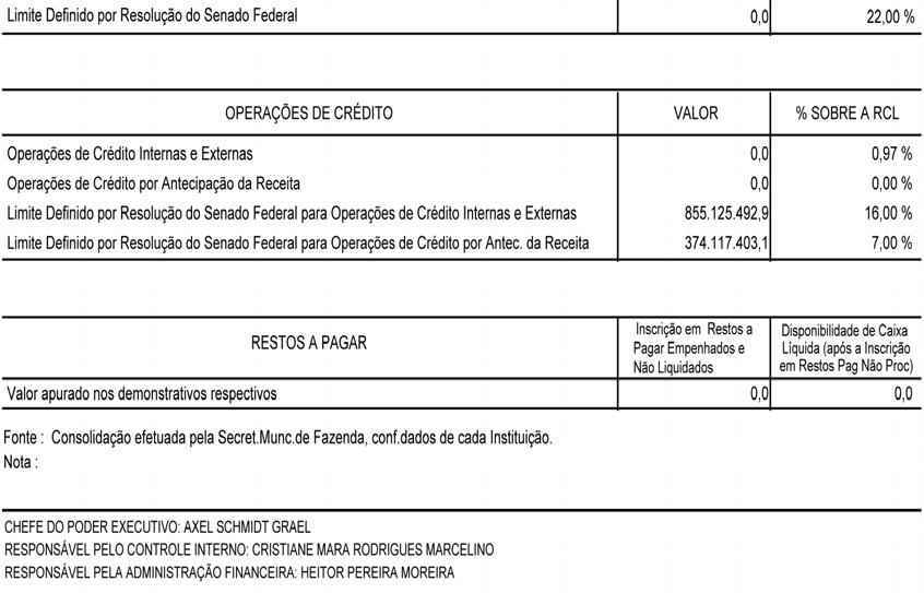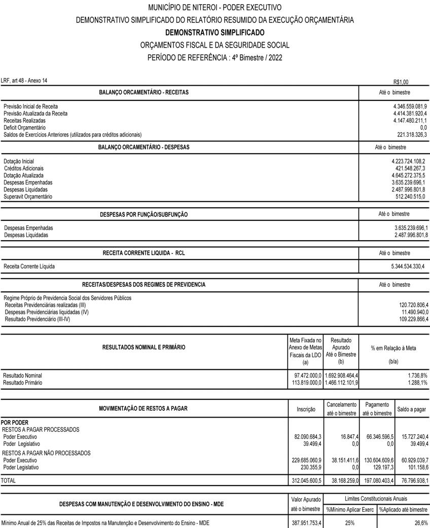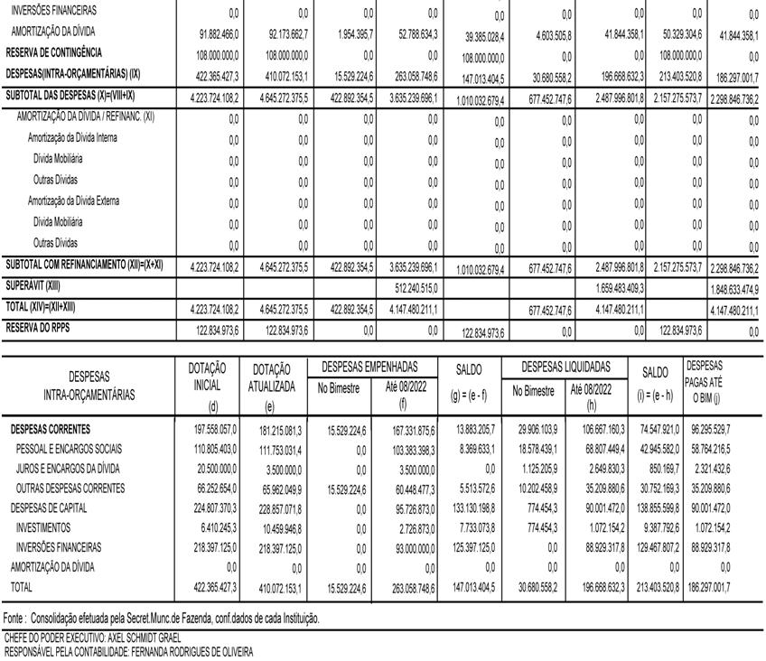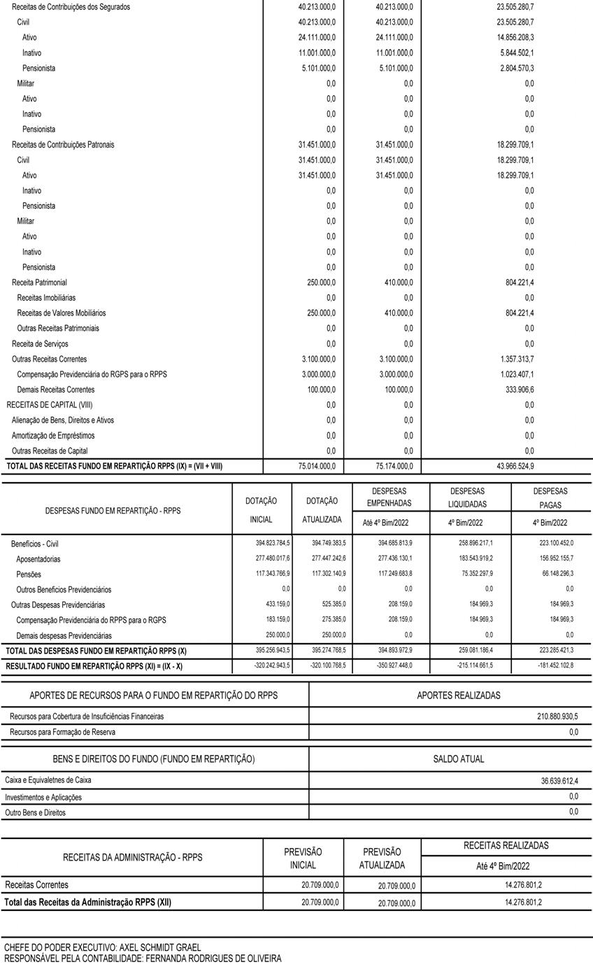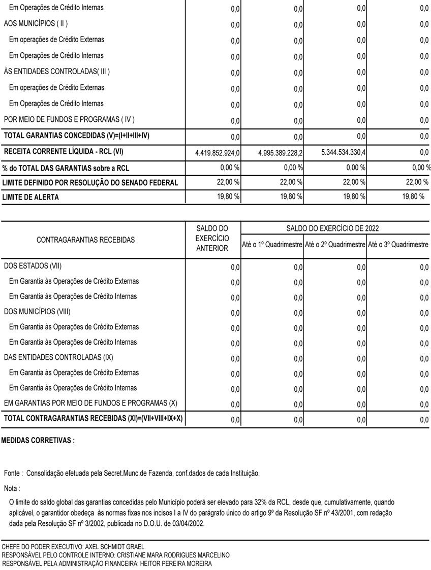 A SECRETARIA MUNICIPAL DE FAZENDA, no uso de suas atribuições legais, tendo em vista o disposto no Artigo 52 e 54 da Lei Complementar nº 101 de 04 de maio de 2000, manda publicar o Relatório Resumido de Execução Orçamentária do 4º Bimestre de 2022 e o Relatório de Gestão Fiscal do 2º Quadrimestre de 2022.