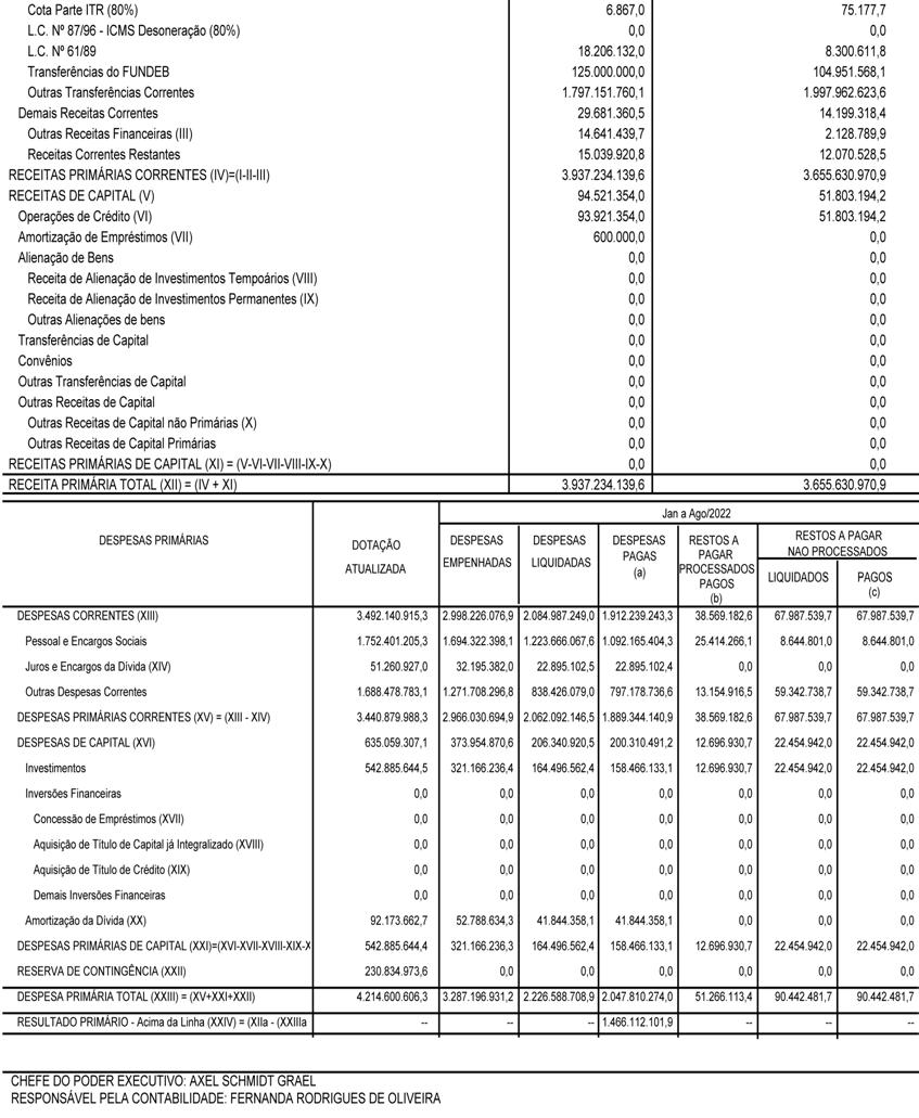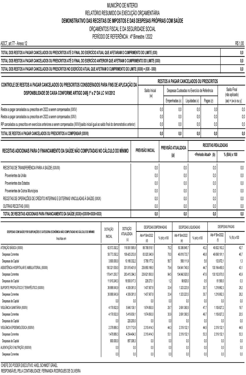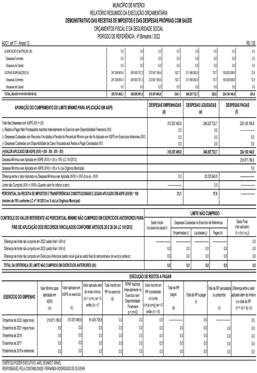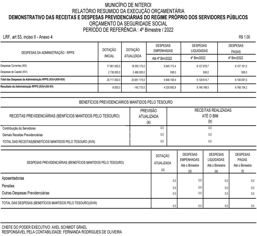 A SECRETARIA MUNICIPAL DE FAZENDA, no uso de suas atribuições legais, tendo em vista o disposto no Artigo 52 e 54 da Lei Complementar nº 101 de 04 de maio de 2000, manda publicar o Relatório Resumido de Execução Orçamentária do 4º Bimestre de 2022 e o Relatório de Gestão Fiscal do 2º Quadrimestre de 2022.