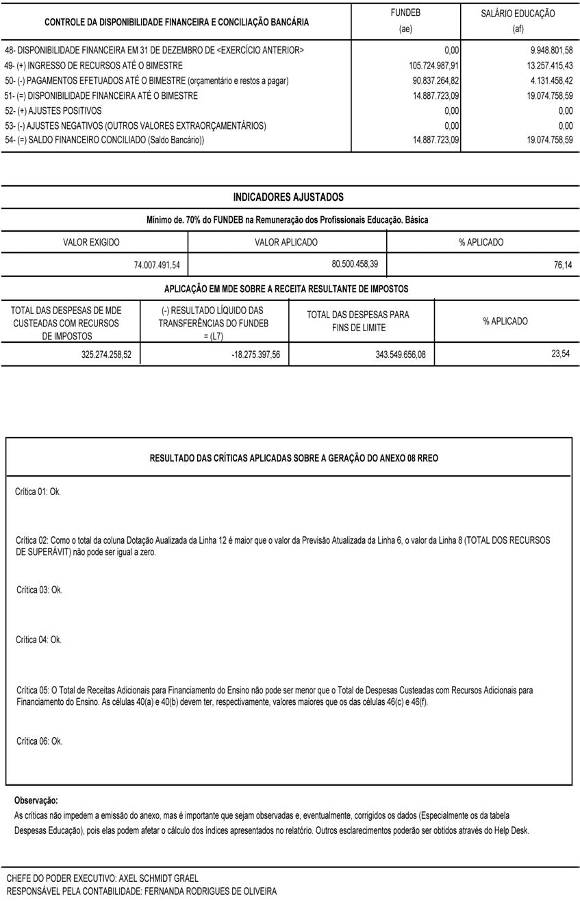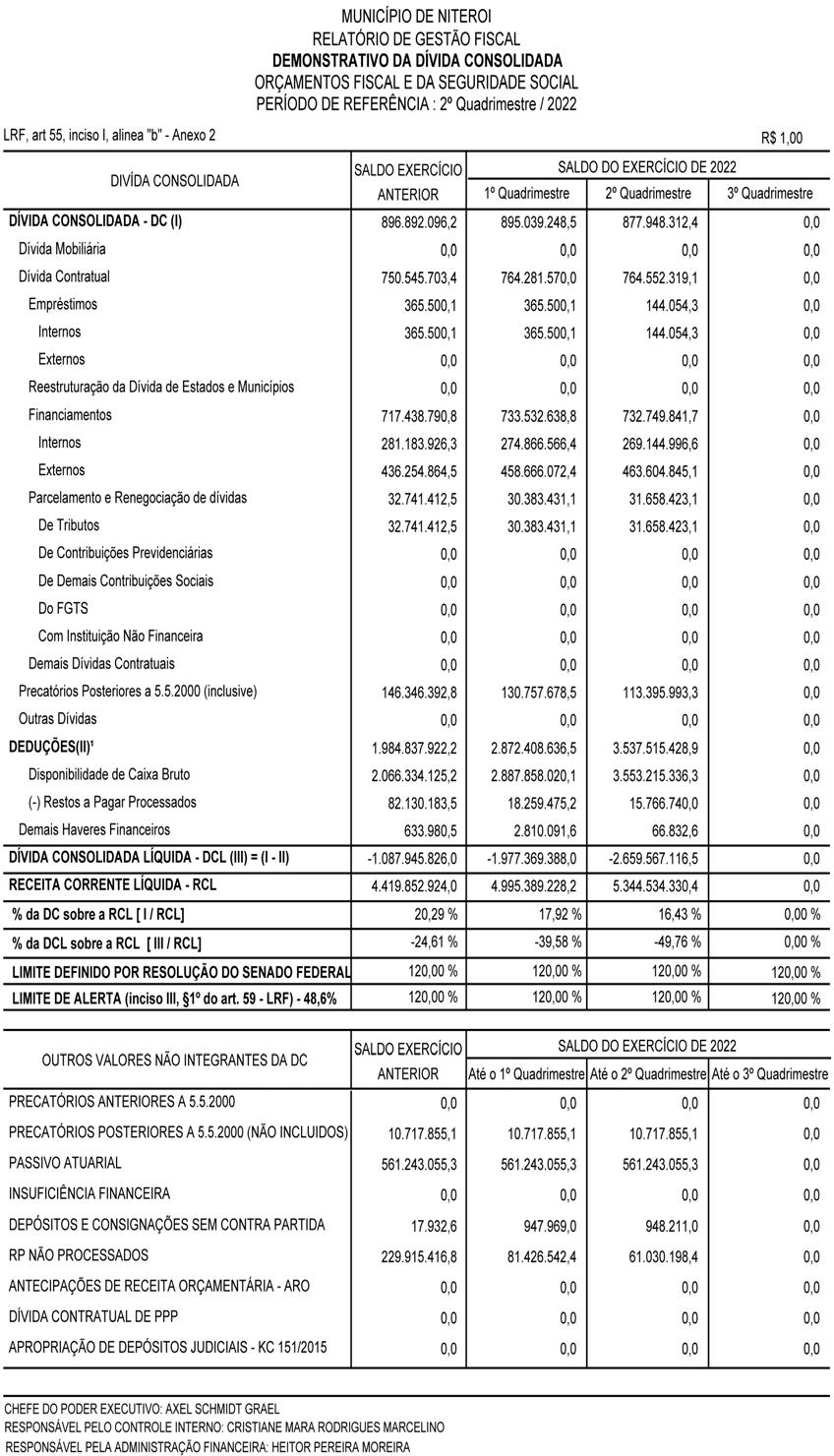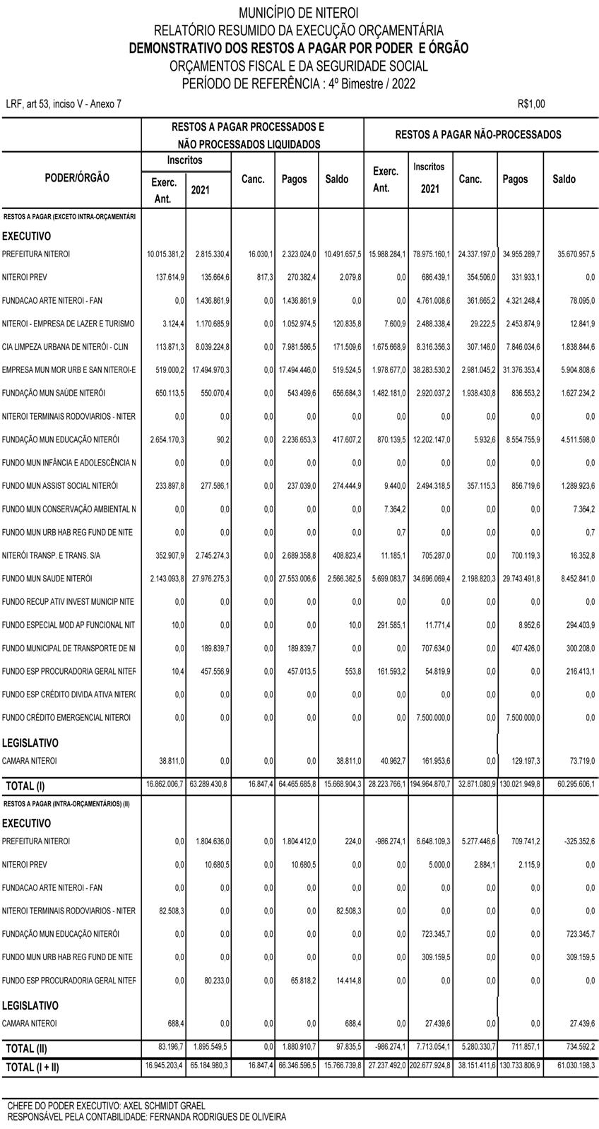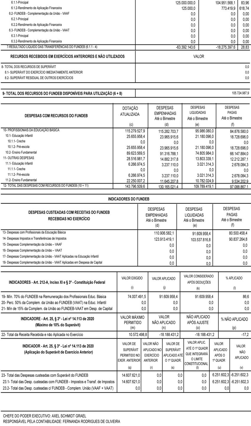 A SECRETARIA MUNICIPAL DE FAZENDA, no uso de suas atribuições legais, tendo em vista o disposto no Artigo 52 e 54 da Lei Complementar nº 101 de 04 de maio de 2000, manda publicar o Relatório Resumido de Execução Orçamentária do 4º Bimestre de 2022 e o Relatório de Gestão Fiscal do 2º Quadrimestre de 2022.