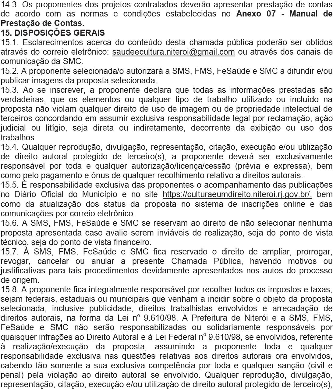 A Prefeitura Municipal de Rio Bonito, Estado do Rio de Janeiro, pela sua Pregoeira, devidamente autorizada pelo Excelentíssimo Senhor Prefeito Municipal, torna público que fará realizar a licitação por Concorrência Pública nº 001/ 2022, Processo 1231/2022, cujo objeto é a Contatação de empresa especializada para execução de obras de Pavimentação e Drenagem em diversos logradouros do Município de Rio Bonito, referente à Conclusão das Obras do Convênio nº 095/2014 – Programa Somando Forças. Propostas e Documentações serão recebidas e abertas no dia 03/11/2022 às 10:00 horas no Prédio do Centro Administrativo, Bloco B, sito à Rua Ramira Schueller nº 10 – Retiro Schueller – Rio Bonito – RJ. O Edital completo será obtido no endereço acima citado a partir de sua publicação. Custo do Edital: 1 resma de papel A4. Outras informações poderão ser obtidas também no endereço supra, ou pelo telefone (021) 2734-0276 Ramal 2131, diariamente das 10:00 às 16:00 horas.