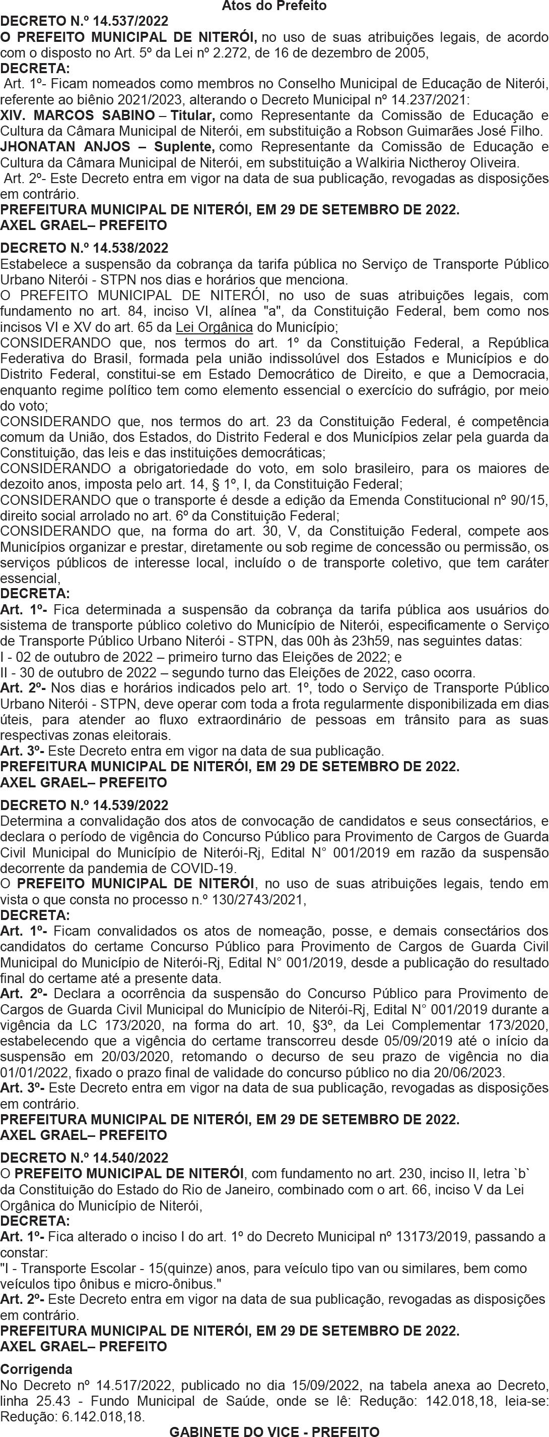 O decreto prevê ainda que todo o Serviço de Transporte Público Urbano de Niterói deve operar com toda a frota regularmente disponibilizada em dias úteis, para atender ao fluxo extraordinário de pessoas em trânsito para as suas res-