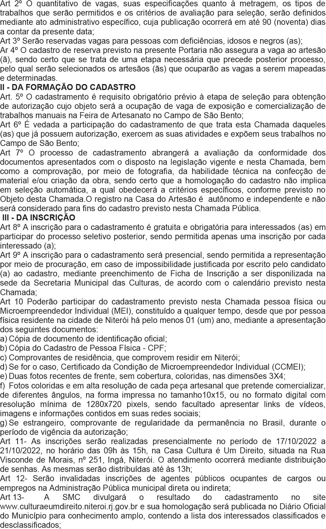 Por meio deste EDITAL, o Sindicato de Guardadores de Automóveis de Niterói, São Gonçalo e Região, conforme qualificação supramencionada, CONVOCA nos termos da legislação em vigor e do estatuto social, neste ato representado por seu PRESIDENTE, os trabalhadores da CATEGORIA; guardadores de automóveis autônomos ou empregados de empresas privadas, estacionamentos particulares e/ou concessão para uso de vias públicas, manobreiro/ manobrista, lavador/enxugador, recepcionista, cobrador/caixa ou auxiliar de recebimento, auxiliar de estacionamento, auxiliar de manobra, polidor, faxineiro e encarregado de manutenção de equipe ou supervisor e, a CATEGORIA de trabalhadores de edifícios/condomínios de empresas terceirizadas ou prestadoras interpostas, porteiro diurno, porteiro noturno ou vigia (sem uso de arma de fogo), zelador ou porteiro chefe, encarregado de turma, encarregado de equipe ou supervisor, manobreiro ou garagista, faxineiro ou servente, recepcionista ou auxiliar do escritório, cabineiro ou ascensorista, para a realização de Assembleia para alteração do ESTATUTO SOCIAL que será realizada no dia 20 (vinte) de outubro de 2022, às 09:00h (nove horas) em primeira chamada e, às 10:00h (dez horas) em segunda e última chamada, com o número de trabalhadores presentes. Local da Assembleia: Rua Atena, Nº 70, Engenho do Roçado, Rio do Ouro, São Gonçalo/RJ-Sede Recreativa do