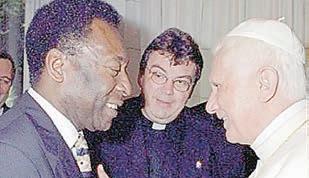 O papa Francisco ganhou uma camiseta da Seleção Brasileira autografada por Pelé. O encontro aconteceu em 2014. "Para o papa Francisco, com respeito e admiração". Em 2005, por ocasião da Jornada Mundial da Juventude, na Alemanha, Bento XVI recebeu Pelé, que na ocasião foi escolhido como embaixador do evento. "Parece que a gente está falando mais perto de Cristo quando é abençoado pelo papa. Ele pegou nas minhas mãos e falou que 'O esporte é muito importante para o ser humano. Foi uma benção maravilhosa', declarou Pelé à época, de acordo com o Vatican News.