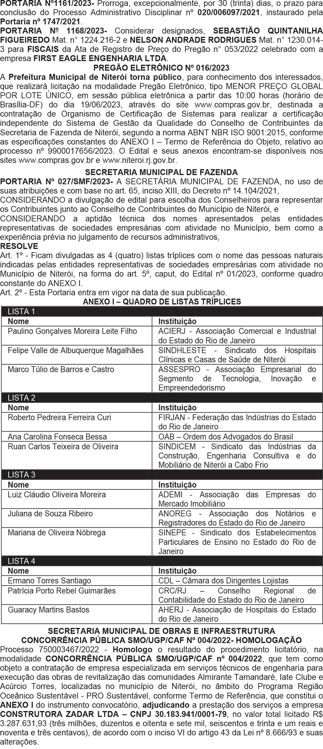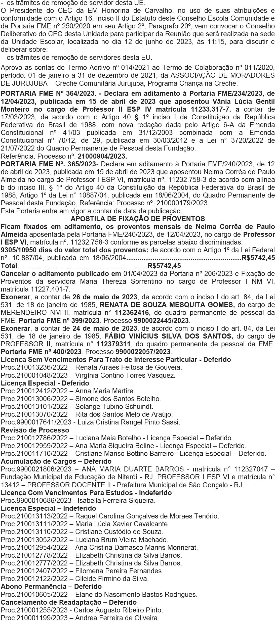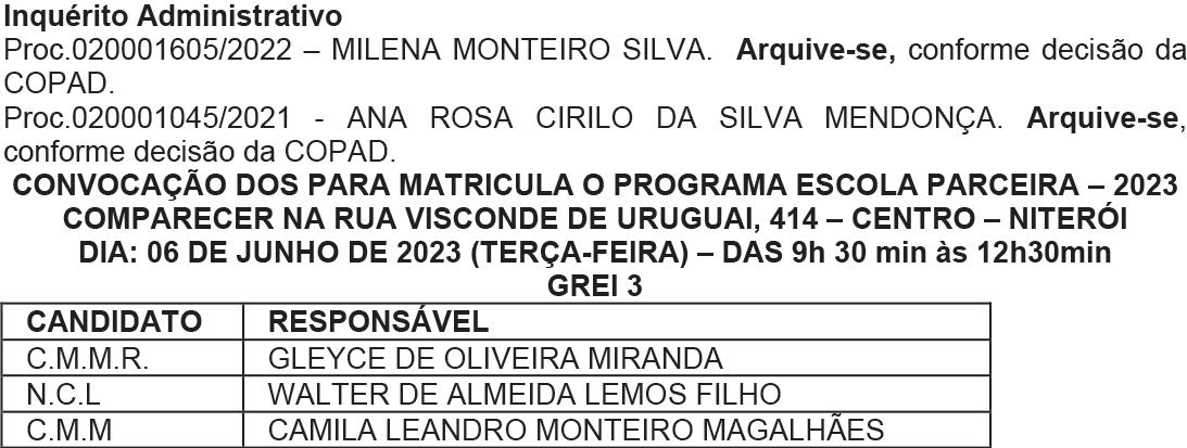 OBS: A comprovação de aptidão Física e Mental constante nos itens 1 e 2 do Capítulo XIX do Edital 002/19 deverá ser atestada por médico devidamente registrado (Médico Clínico Geral e Psiquiatra), na forma do artigo 26, I da Lei 1822/13; Rio Bonito, 02 de Junho de 2023.