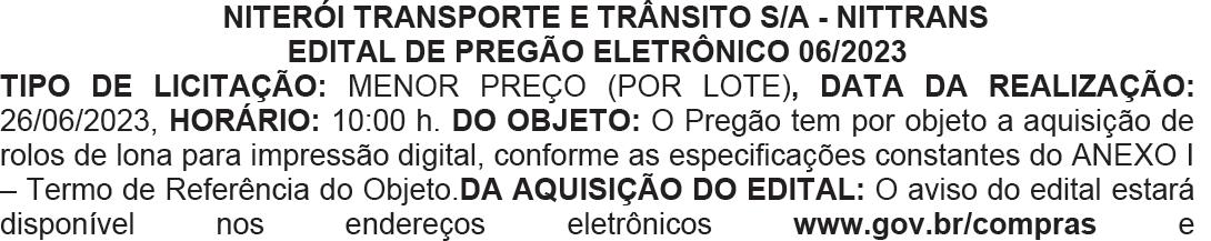 ERRATA DE PUBLICAÇÃO DA ATA DE REGISTRO DE PREÇO Nº 01/ 2023, DO PROCESSO ADMINISTRATIVO Nº: 4849/2022. PUBLICADA NO JORNAL A TRIBUNA EDIÇÃO 35.934 ÁS FOLHAS 10 DO DIA 29 DE MAIO DE 2023. ONDE SE LÊ; VALOR UNIT.R$: 3,16 ; LEIA – SE; VALOR UNT.R$: 3,76