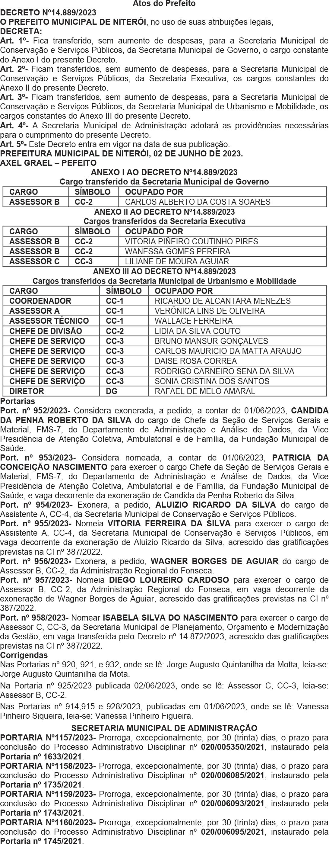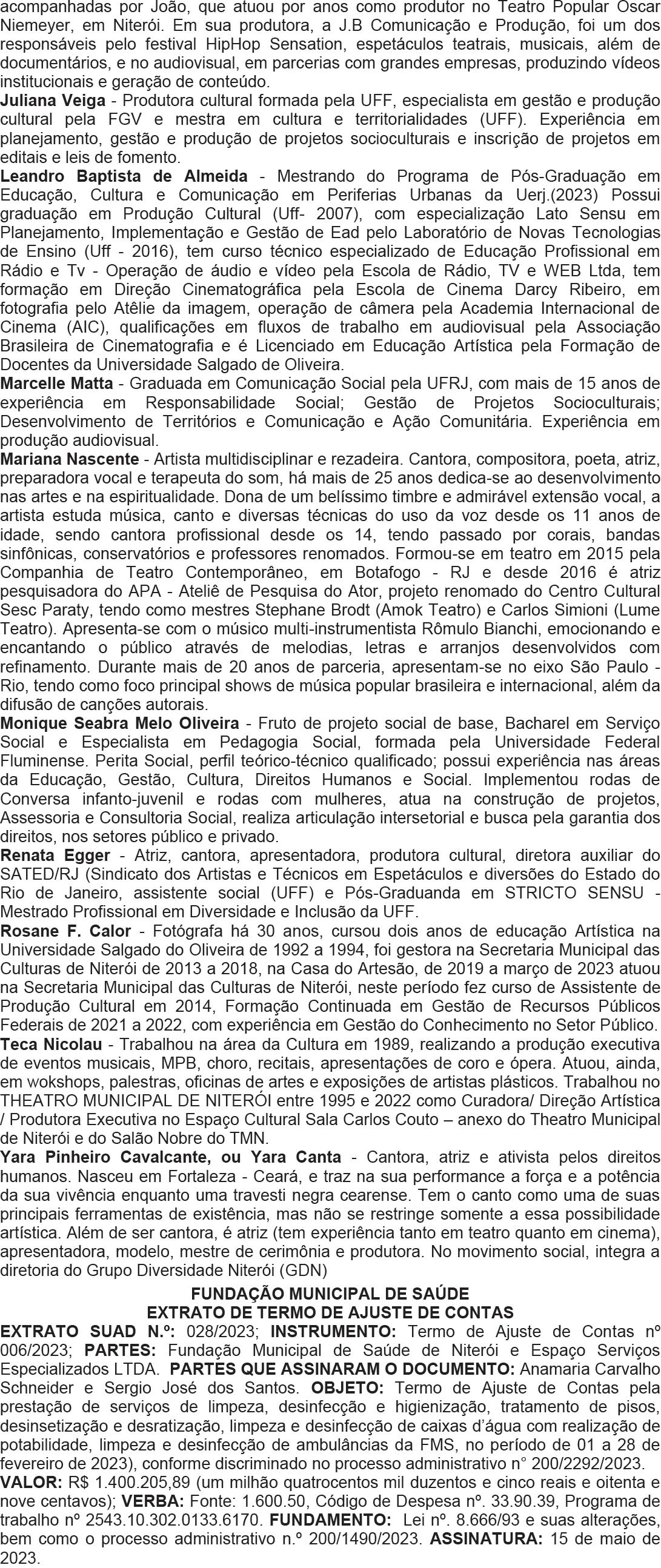 Fundado em 26 Novembro de 1936 em 26 Fundado em 26 Novembro de 1936 em 26 A TRIBUNA é uma publicação da Editora Esquema Ltda CNPJ: 30.108.948/0001-26 www.atribunarj.com.br DiretoriaDiretoria Diretoria: Jourdan Amóra Eva de Lourdes Santana Amóra Gustavo Santana Amóra Editor:Editor: Editor: Marcelo Macedo Soares EndereçoEndereço Endereço: Rua Professor Heitor Carrilho, 350F, Centro, Niterói - RJ - Cep: 24.030-230 TT Telefelef elefelef elefones: ones: ones: (021) 2719-1886 / 2621-4986 Whatsapp: Whatsapp: (021) 97848-4642 Assinatura: assinaturaatribuna@gmail.com assinaturaatribuna@gmail.com TT T rimestral rimestral R$ 126,00 126,00 R$ 126,00 126,00 Semestral Semestral Semestral Semestral R$ 252,00 252,00 AnualAnual AnualAnual R$ 504,00 504,00 ADJORI-RJ 2 SÁBADO, DOMINGO E SEGUNDA-FEIRA, 3, 4 E 5 DE JUNHO DE 2023