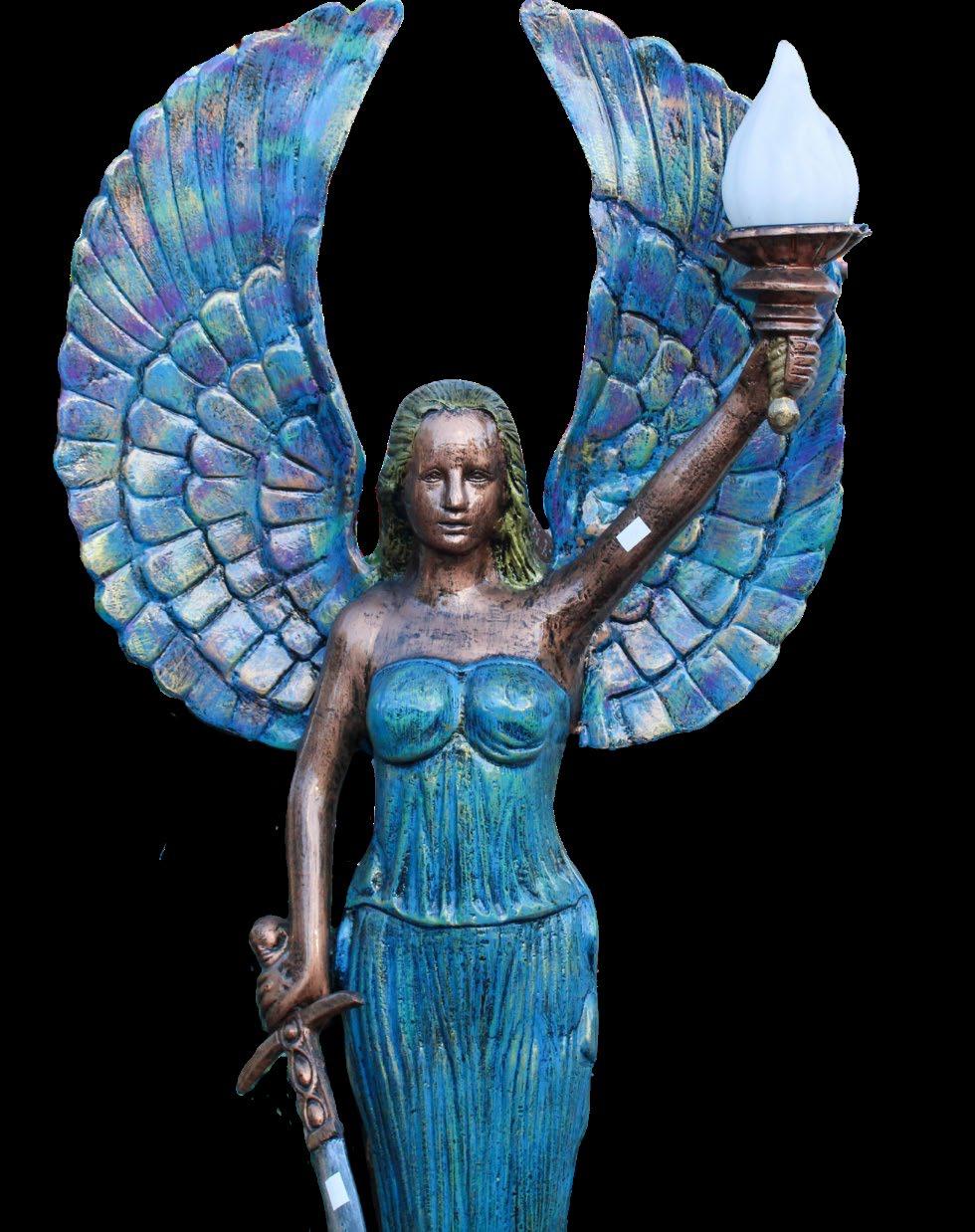 On each corner sits an oddity with its own story: furniture made from Indonesian teakwood, lively Talavera ceramics crafted in Mexico, recycled aluminum statues custom-colored with automotive paint.