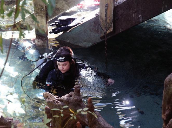 swim together in the Breeding Marsh just across the boardwalk. Big Kyle, about a 13-foot American alligator, blind in one eye, dominates the back portion — no one dares to try him, except for Jaws. Jaws is a spunky old alligator, Savannah’s favorite. He’s always trying to fight, but he never wins. He is in a solitary enclosure now — the only one at Gatorland. They’ve crafted their own pseudowild hierarchy, alligators claiming territory and breeding partners and fighting to assure they keep them. But they will never truly be wild again. If they were, Bungee probably wouldn’t be alive. If the cord hadn’t killed him, the other alligators could have sensed his weakness and taken advantage. Bungee prefers to sunbathe across from the Breeding Marsh, reachable by a short swim under the boardwalk. It’s more secluded there.