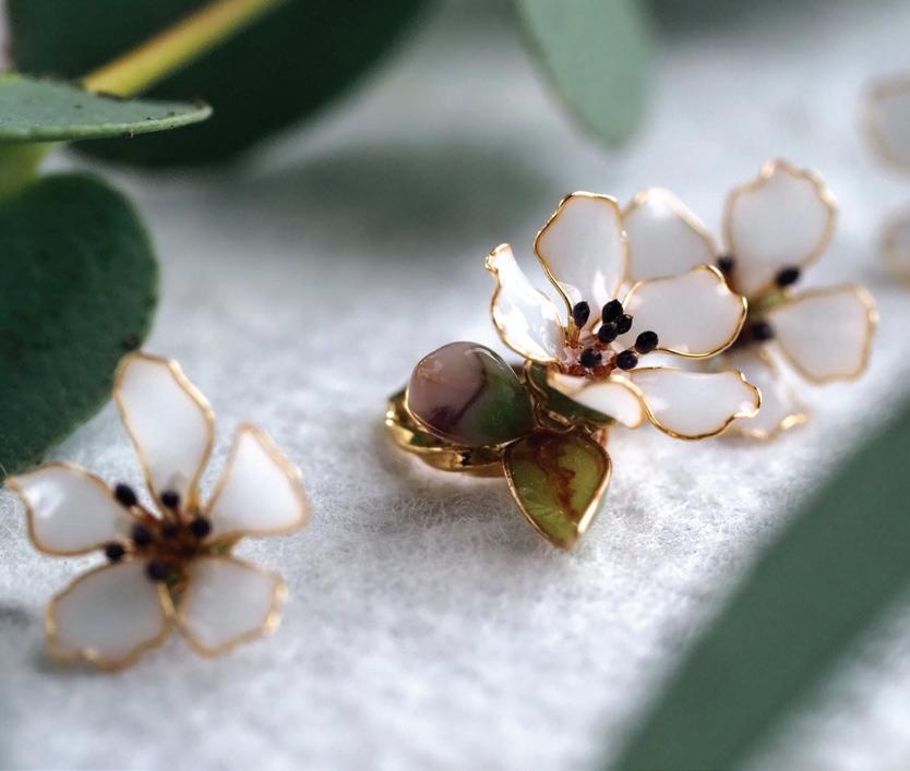 In the context of art as jewelry — I love that I can try to take a very ephemeral moment and make it permanent. “Nothing Gold Can Stay,” a poem by Robert Frost, has always resonated with me and I think about it fairly often. Because, “Her early leaf’s a flower; But only so an hour” I started to pause more during the day to just appreciate the way a moment looks and feels. Even more so with flowers and lush greenery (I live in a desert), they have an almost otherworldly beauty when you stop and really take the time to look at them. If you think about how they grow, why they’ve developed, how they produce color, etc... It becomes clearer that that delicate moment in time is extremely fragile. I try to translate the feelings and thoughts I have in those moments to the jewelry, so that something, “gold can stay.”