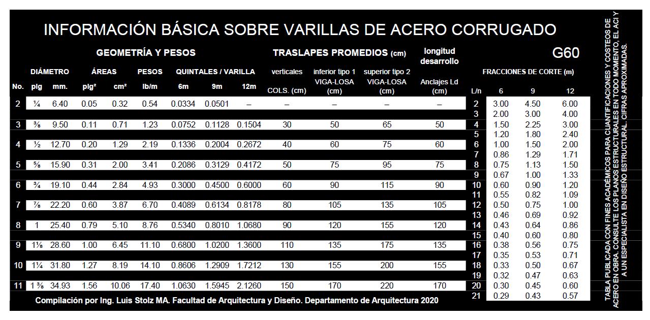 = 930.16 plg² As = (2 x 0.31) = 0.62 plg² %As = 0.62 / 930.16 = 0.000667 = 0.0667% (en medio) As = (2 x 1.56) = 3.12 plg² %As = 3.12 / 930.16 = 0.003354 = 0.3354% (abajo corridas) Cuantía